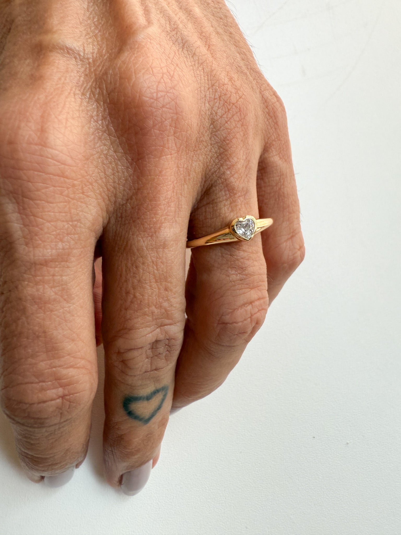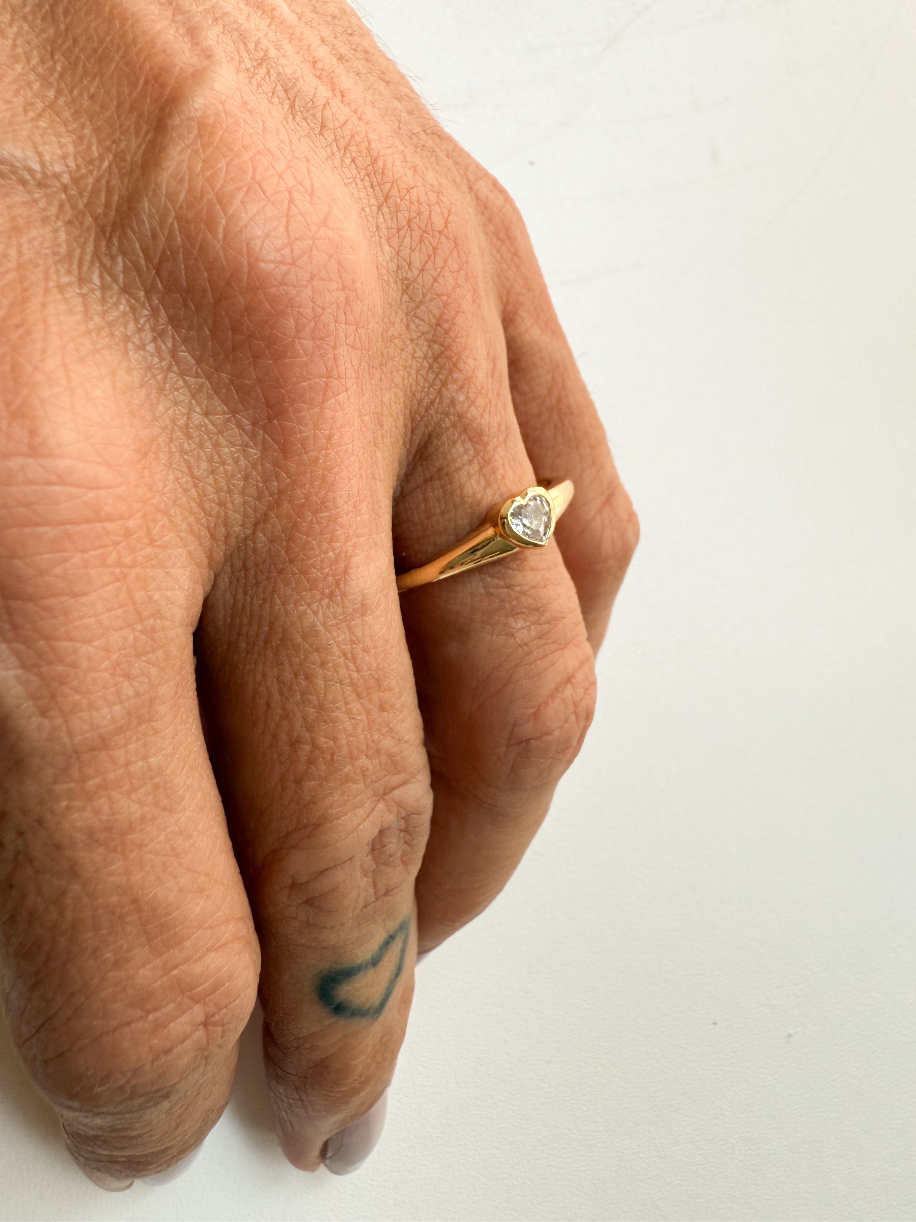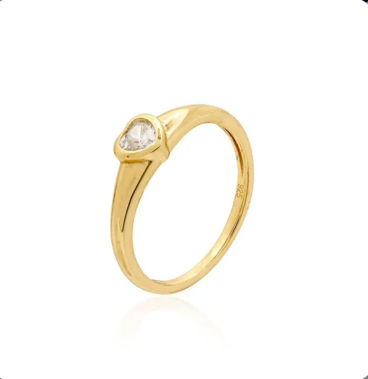 Este é o anel coração com cravação inglesa. Feito de prata com banho de ouro 18k, este anel apresenta um coração central com cravação inglesa. Seu design elegante e delicado é perfeito para adicionar um toque de romance a qualquer look. Aproveite a qualidade e sofisticação deste anel de alta qualidade.