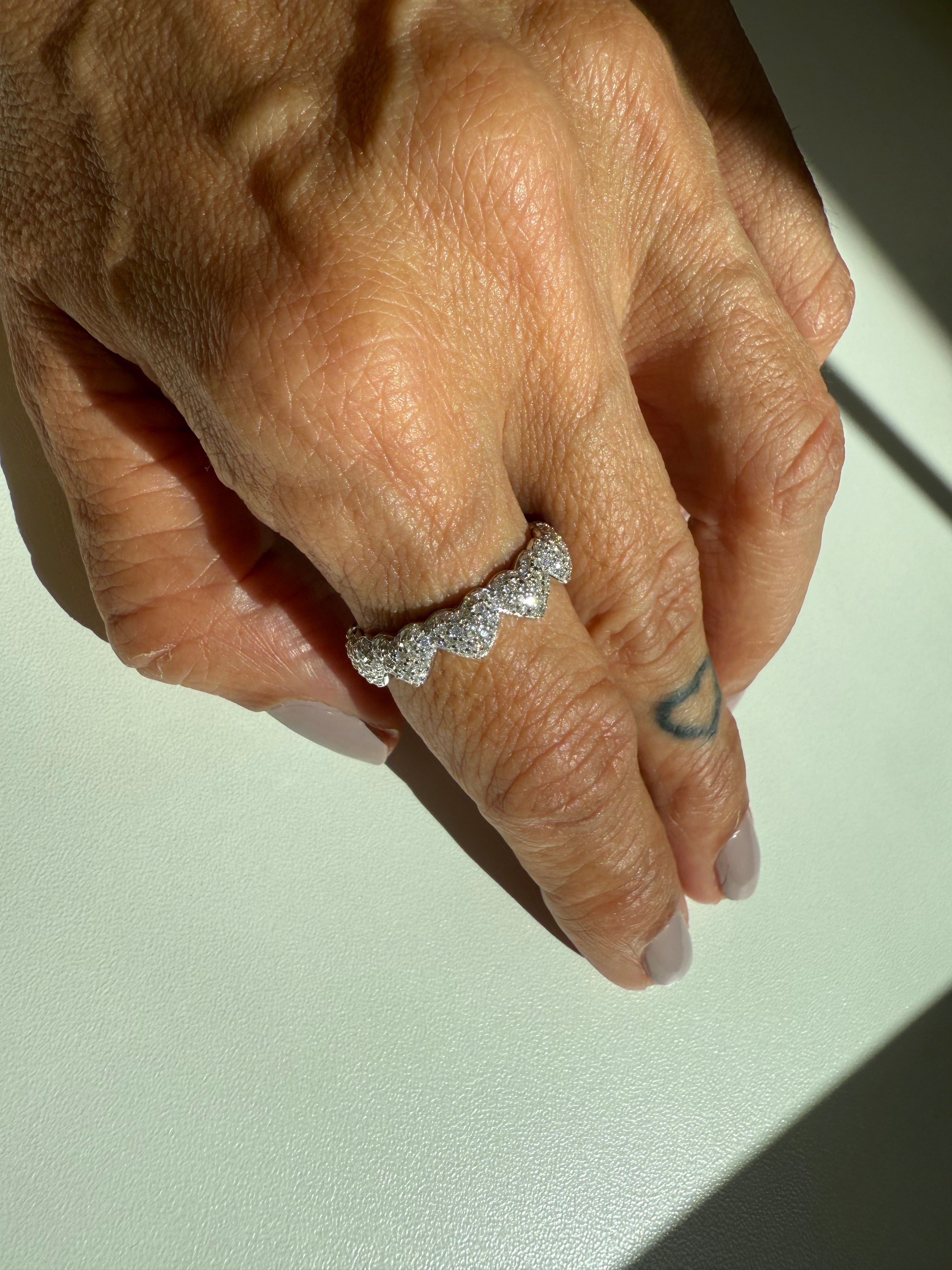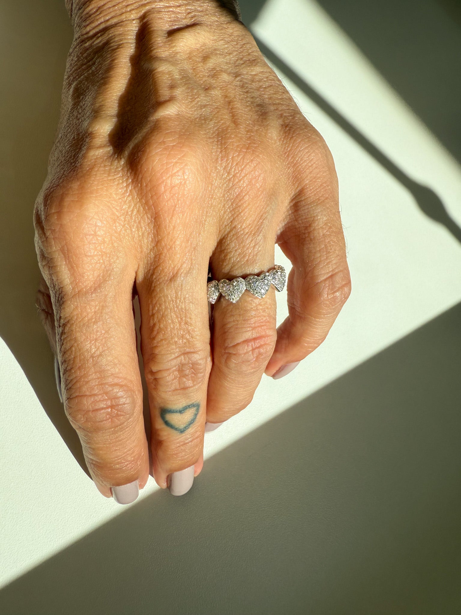 Este anel é feito em prata 925 e possui um banho de ródio que proporciona maior durabilidade e brilho. Os lindos corações cravados com zircônias austríacas dão um toque delicado e romântico à peça. Sinta-se elegante e apaixonada com este anel exclusivo.