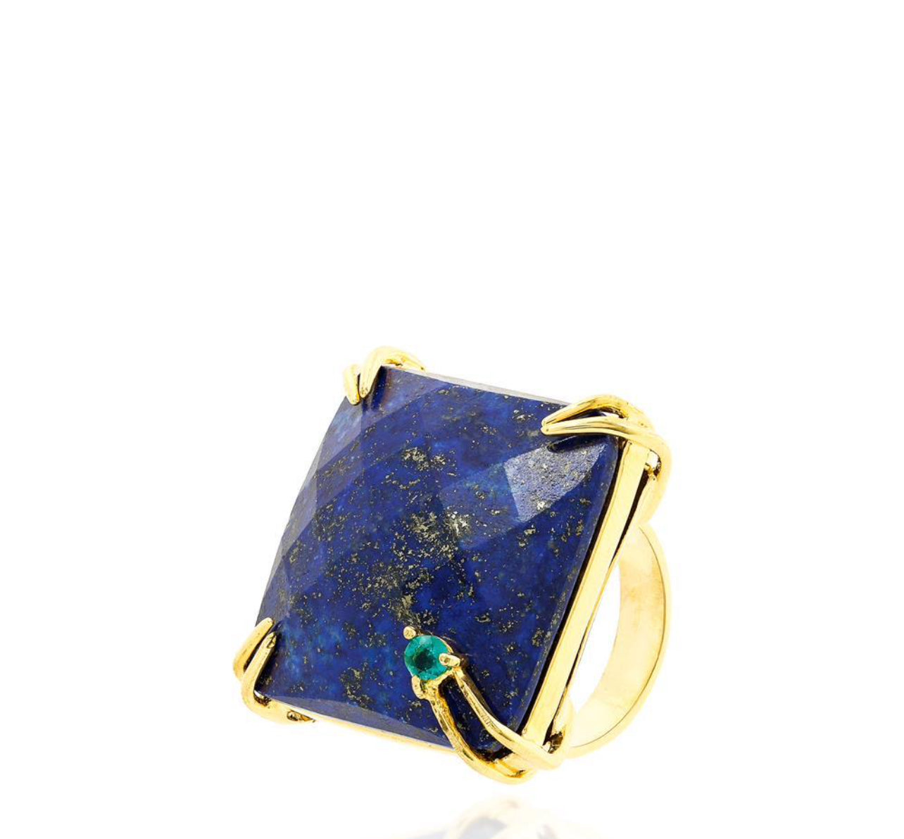 Este elegante anel de prata 925 com banho de ouro 18k apresenta uma bela pedra de lápis lázuli e turmalina verde. Com um design clássico e materiais de alta qualidade, ele é perfeito para adicionar um toque de sofisticação e estilo ao seu visual. Adquira já e se destaque com este luxuoso anel.