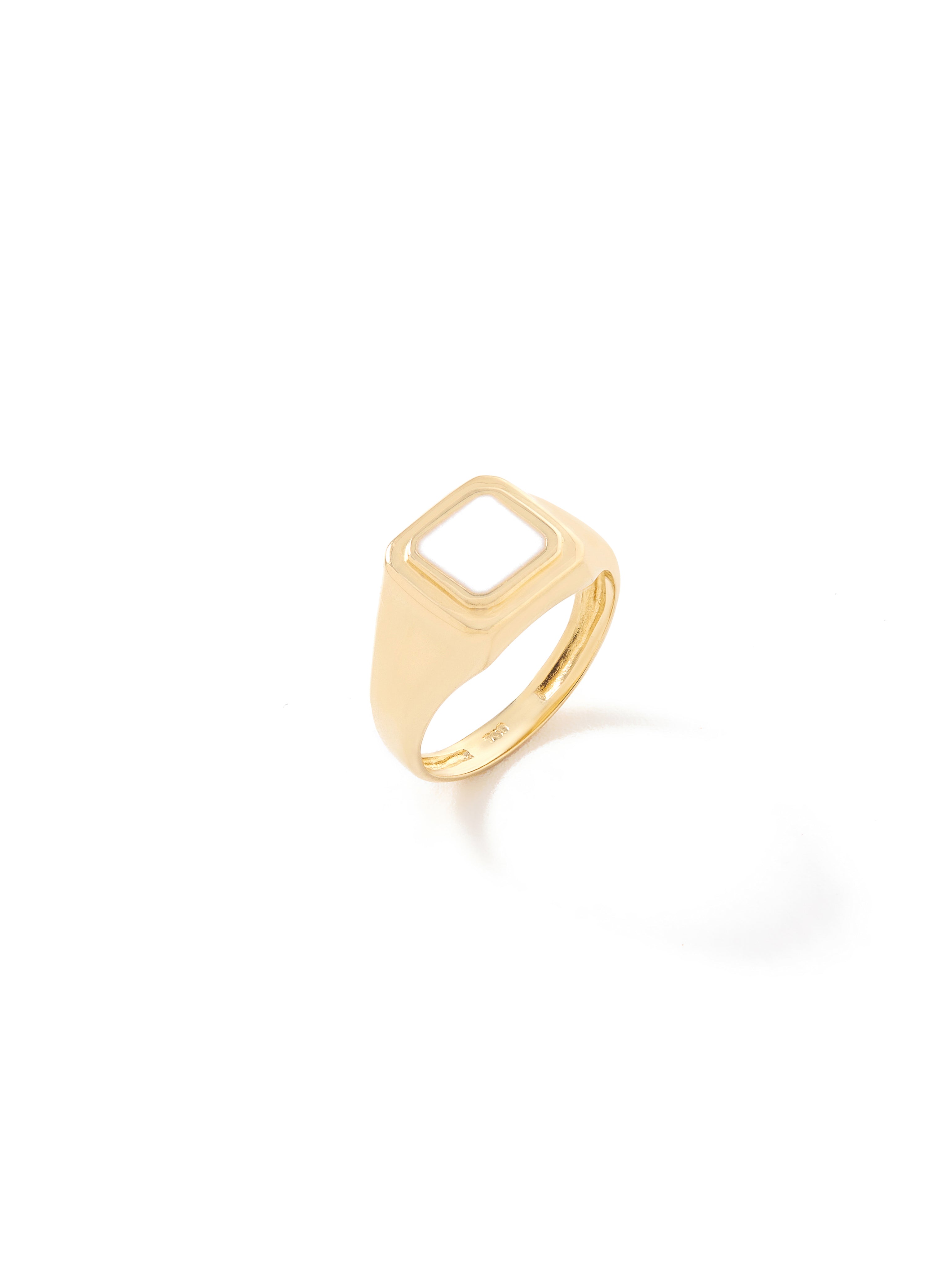 Este Anel Mindinho é feito em ouro 18k e possui um delicado esmalte branco, perfeito para o seu dedo mindinho. O tamanho do aro é 11, proporcionando um ajuste confortável para o seu dedo. Adicione um toque de elegância às suas mãos com este anel exclusivo.