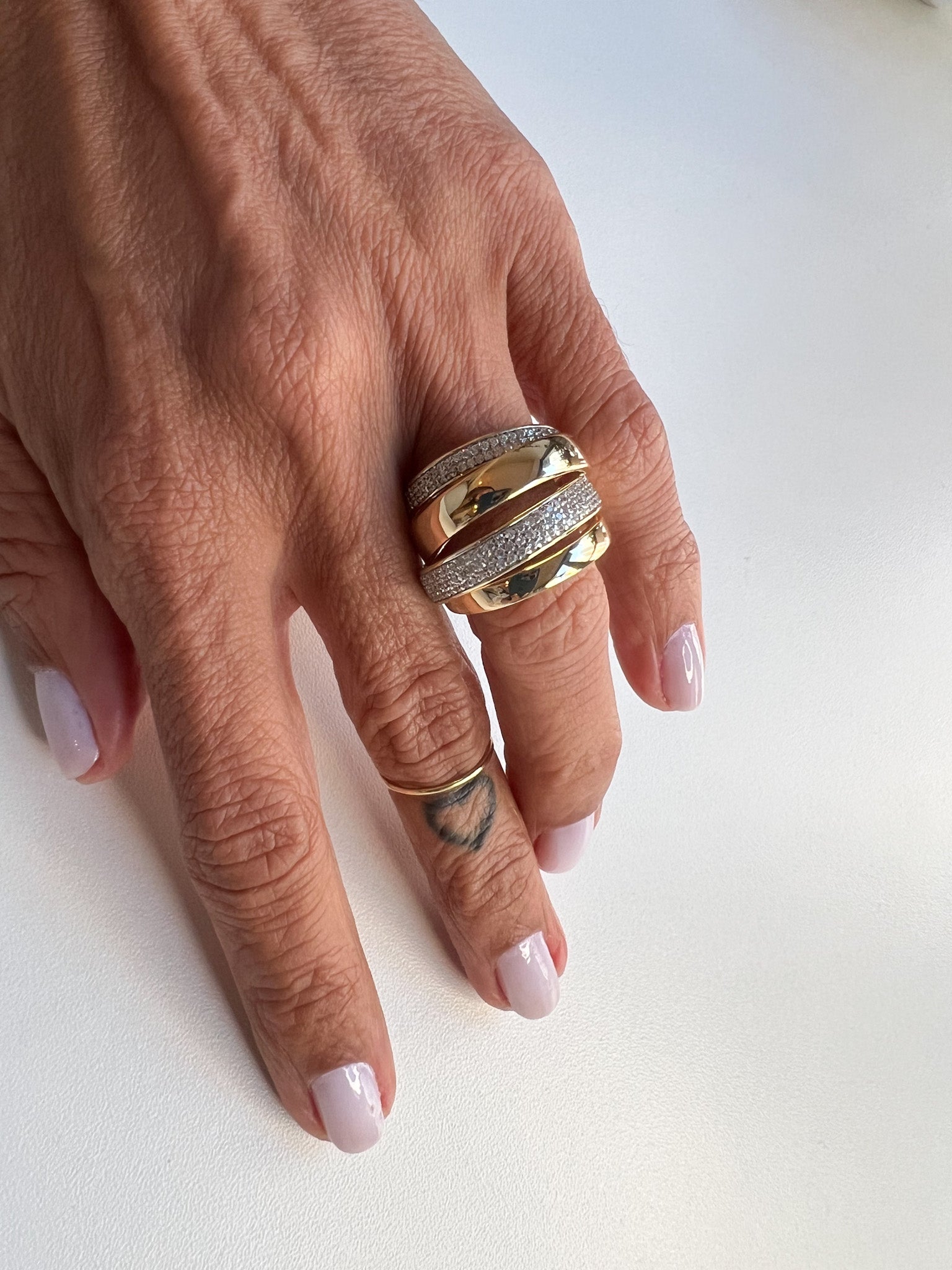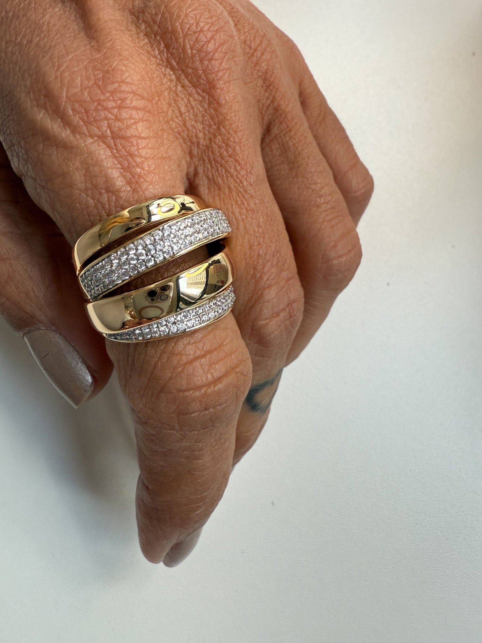 O Anel Patrícia é feito em prata 925, com um belo banho de ouro e cravações de zircônias no aro 18/5. Feito com materiais de alta qualidade, este anel é a escolha perfeita para adicionar um toque elegante e sofisticado ao seu visual.