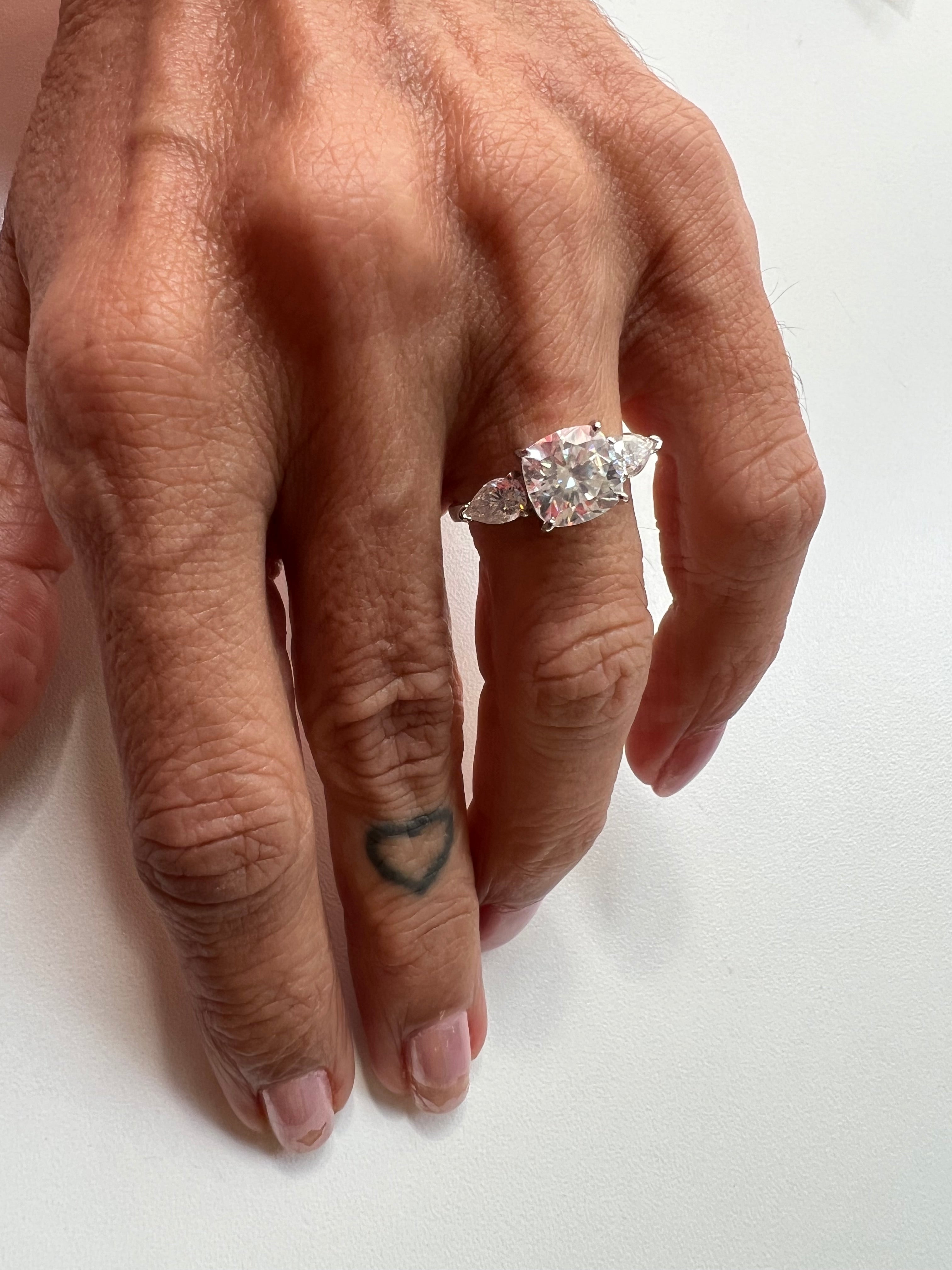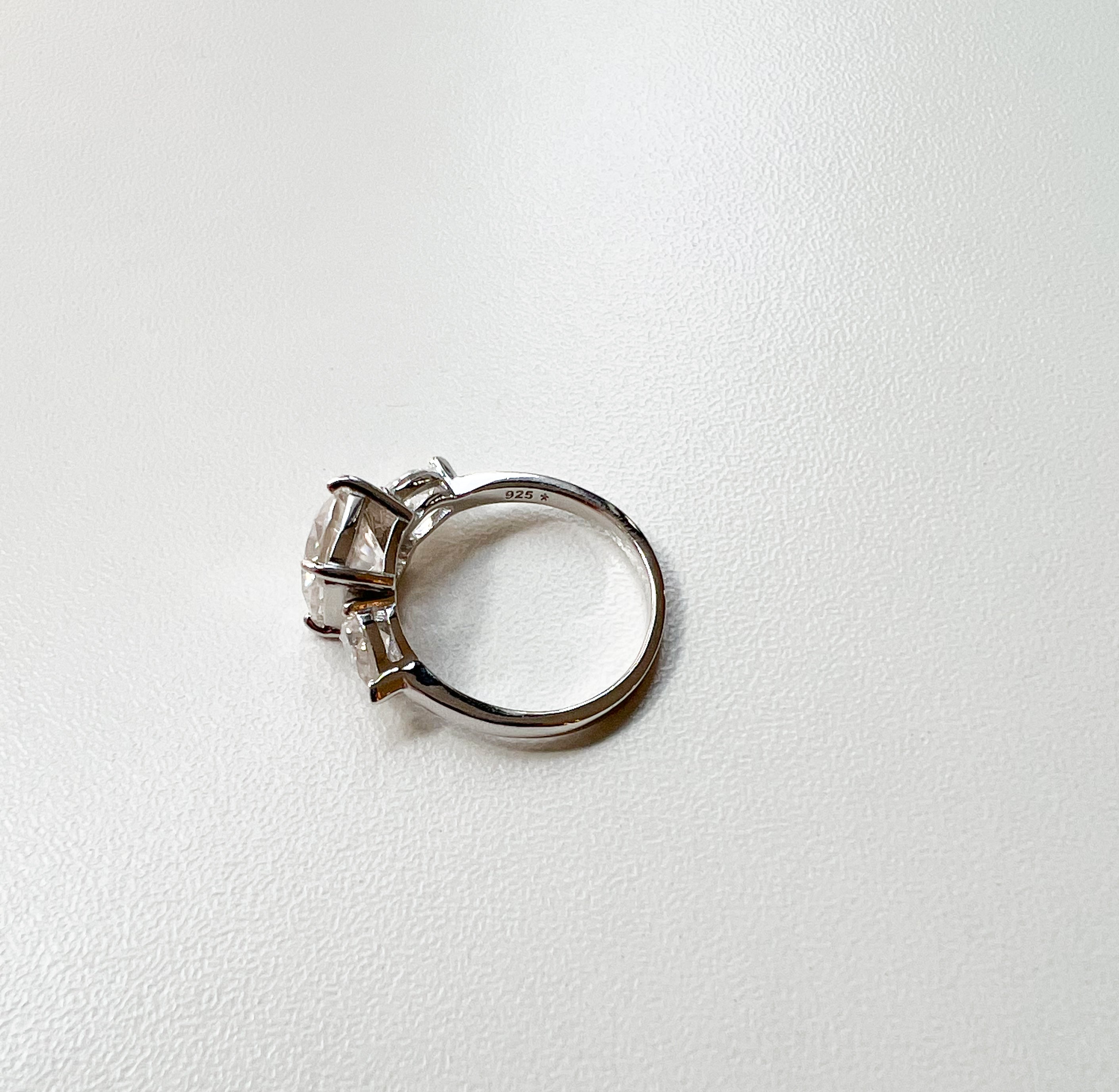 Anel sofisticado em prata 925 com banho em ródio, garantindo durabilidade e brilho excepcional. Apresenta uma deslumbrante moissanite de 8mm com 3,11 quilates, oferecendo refração superior e brilho comparável ao diamante. A lapidação Princess maximiza o jogo de luz, criando um efeito visual impressionante com claridade e pureza notáveis.