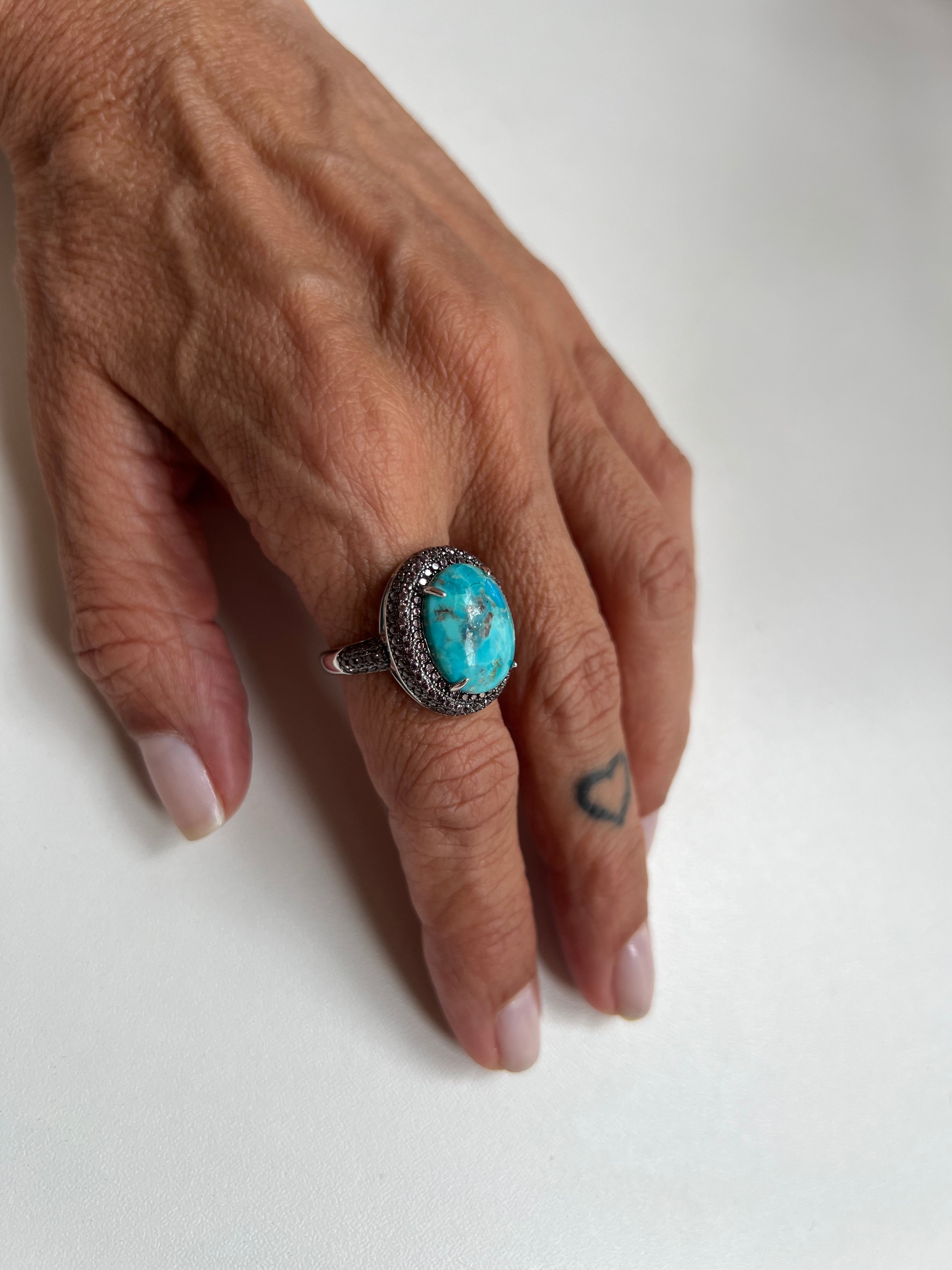 O Anel Turquesa com chocolate é uma joia elegante e versátil. Feito em prata 925 com banho de ródio, possui uma pedra cabochon turquesa natural, complementada por cravações de zircônias chocolate. Seu aro 19 garante um ajuste perfeito para qualquer ocasião. Adicione um toque de sofisticação ao seu look com este anel exclusivo.