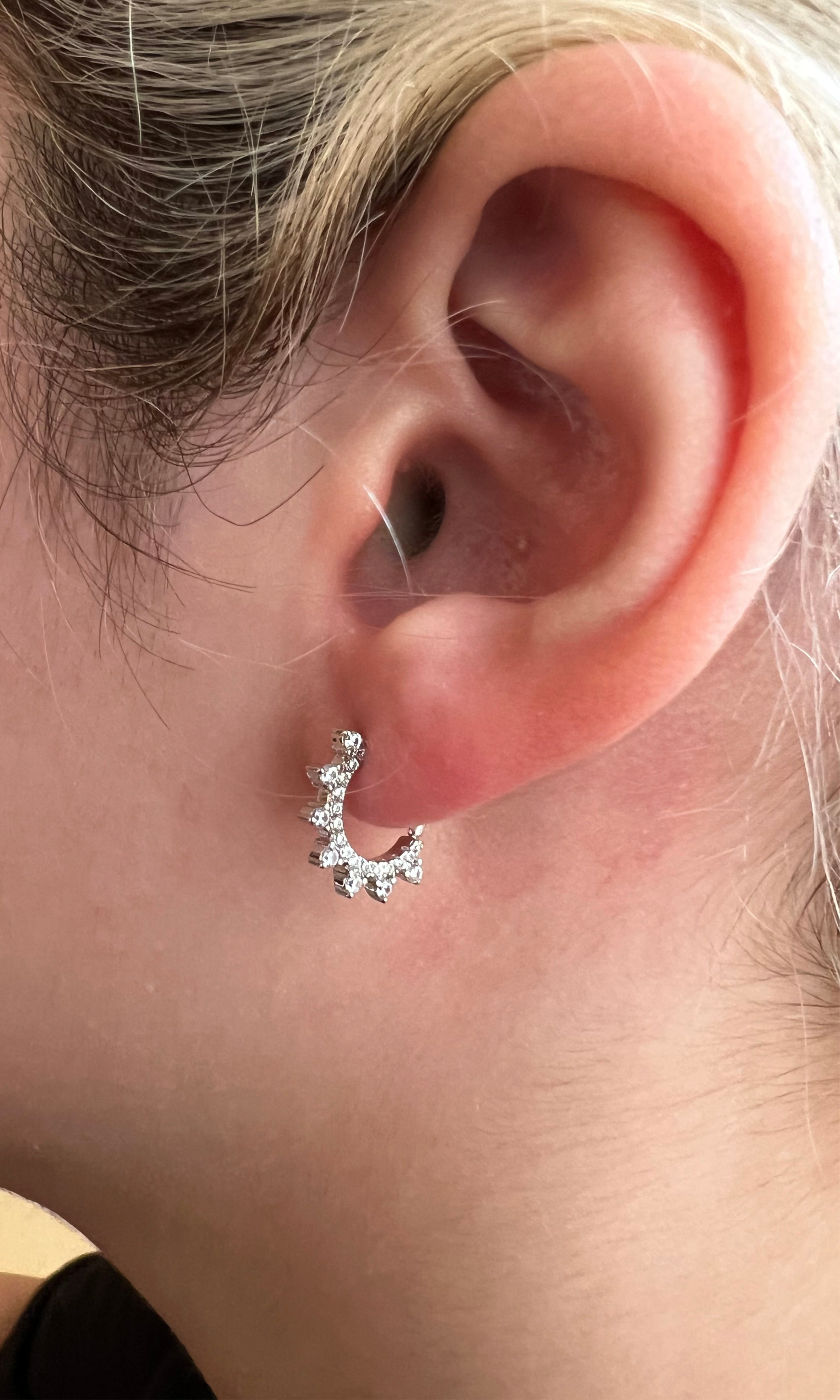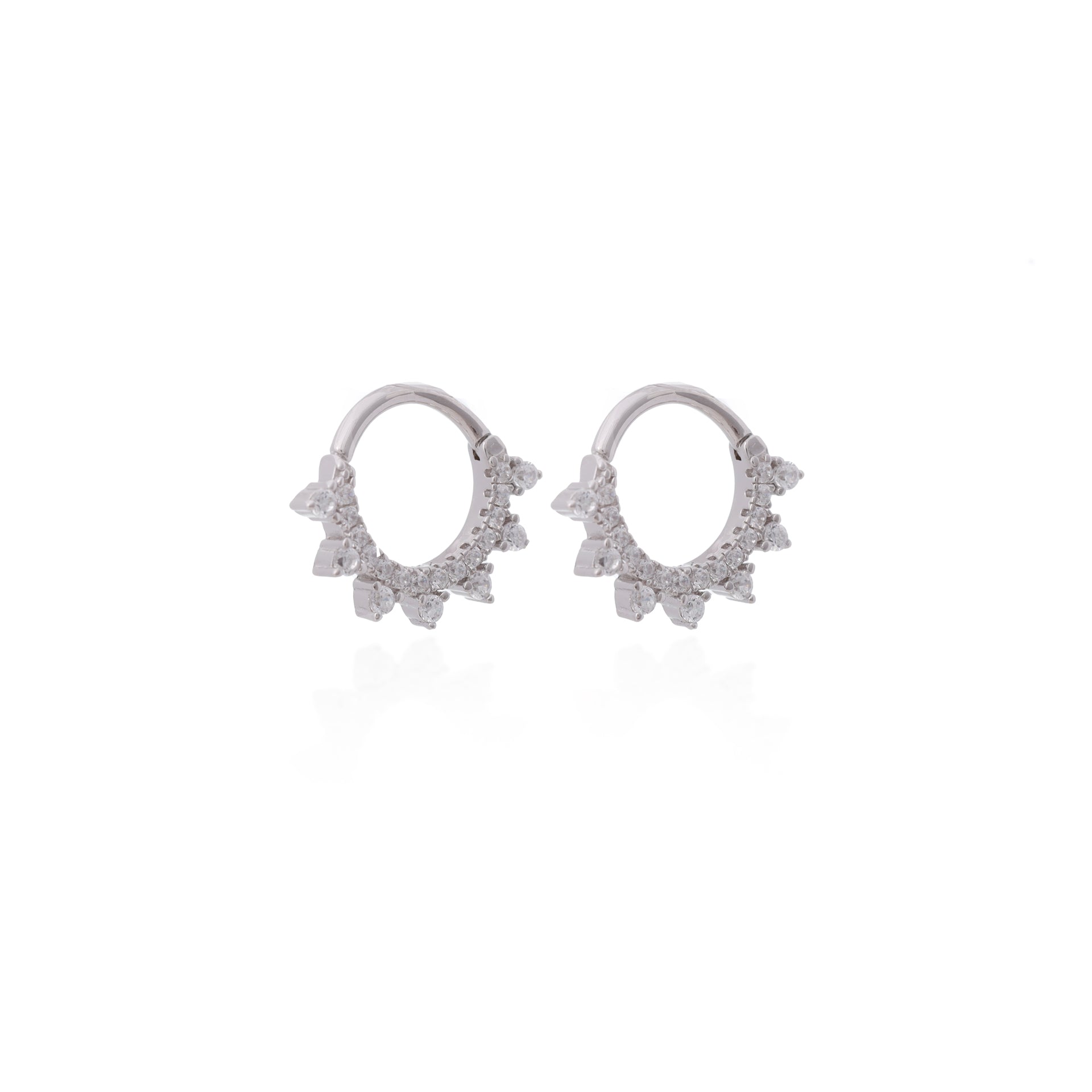 Argolas Spike confeccionadas em prata 925 com banho de ródio, garantindo durabilidade e brilho excepcional. Cravejadas com zircônias de alta qualidade que refletem luz como diamantes, proporcionando sofisticação ao seu visual. O design contemporâneo com elementos spike adiciona personalidade e estilo a qualquer produção.