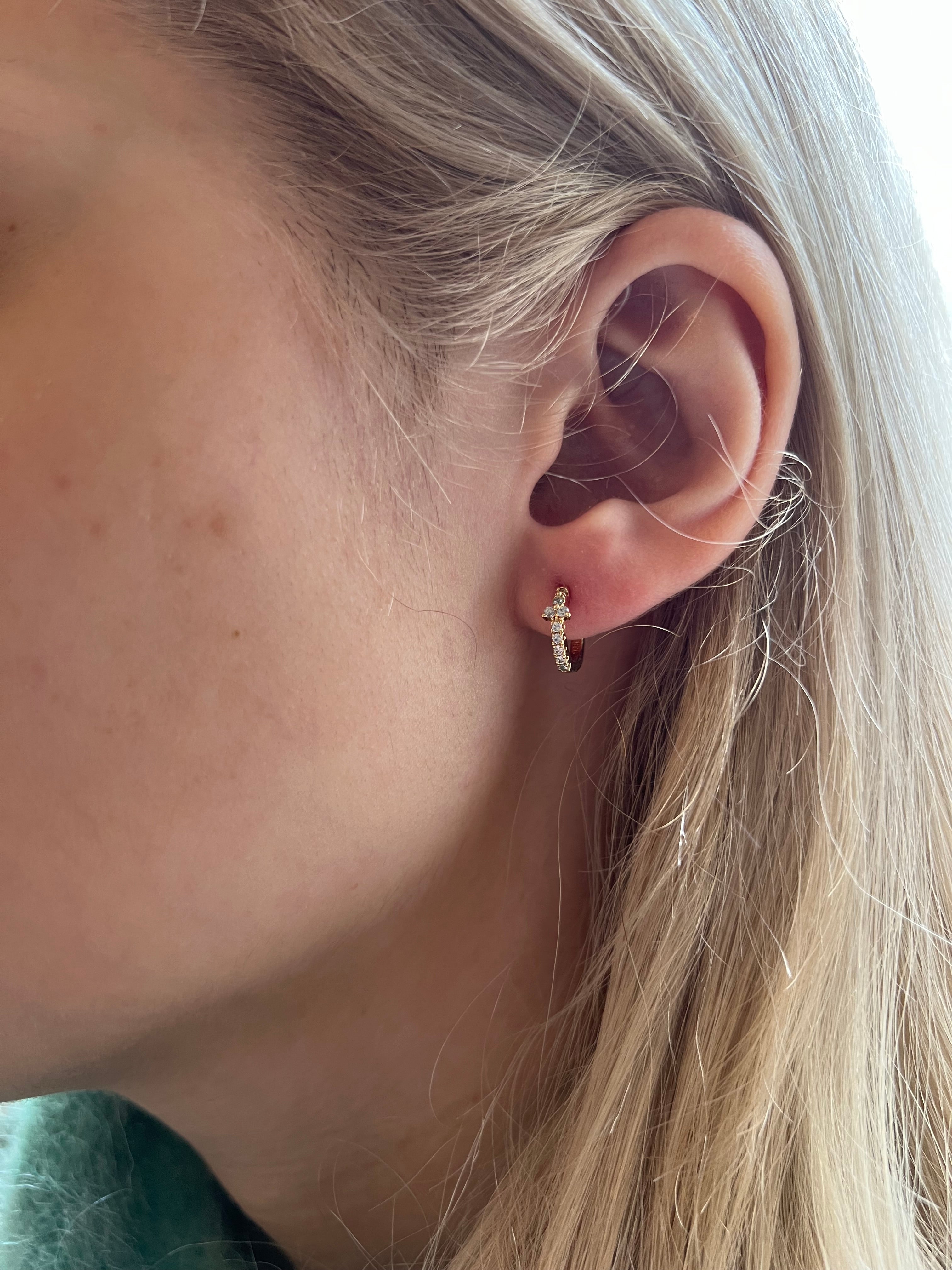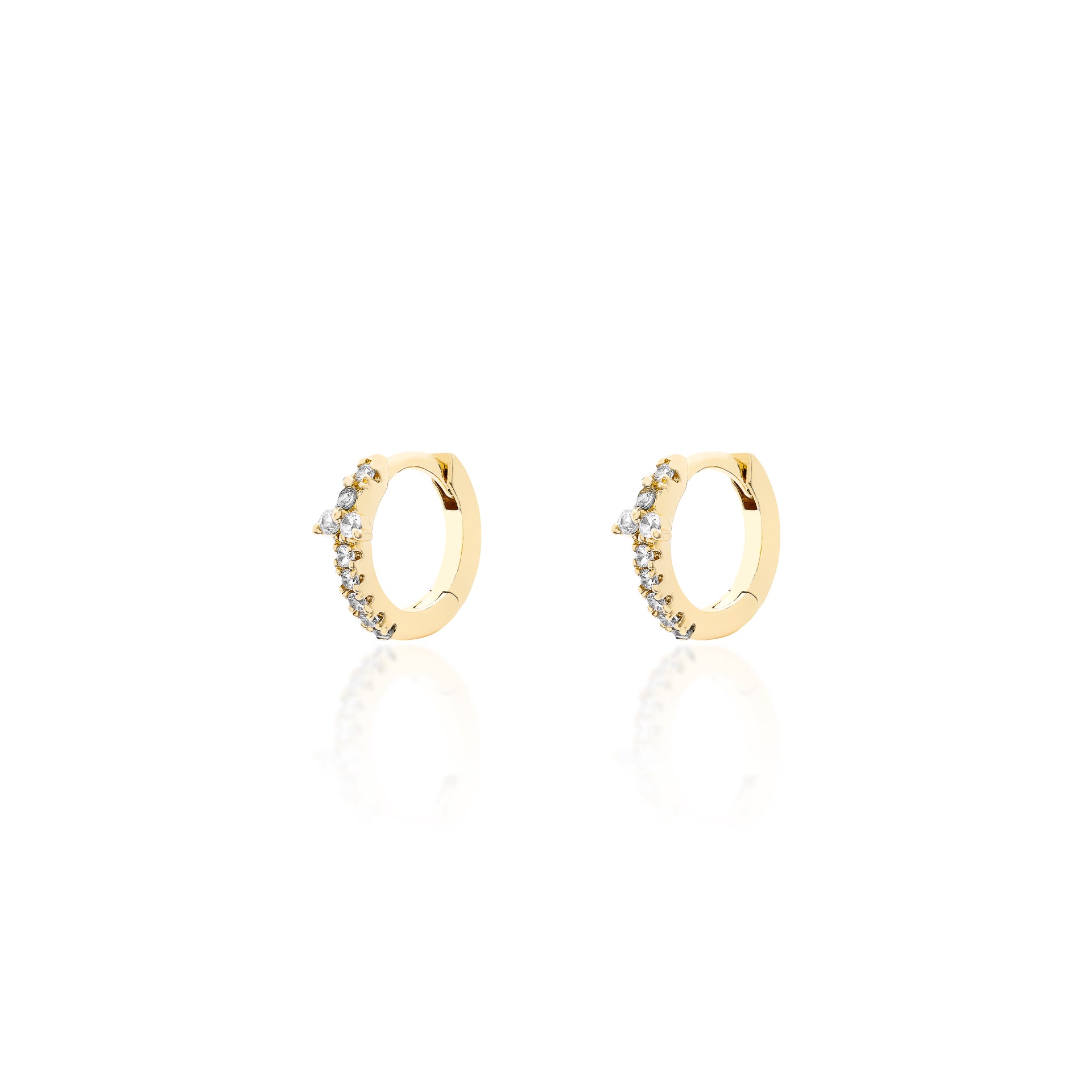 Mini argola de prata 925 com banho de ouro 18k com cravações de zircônias