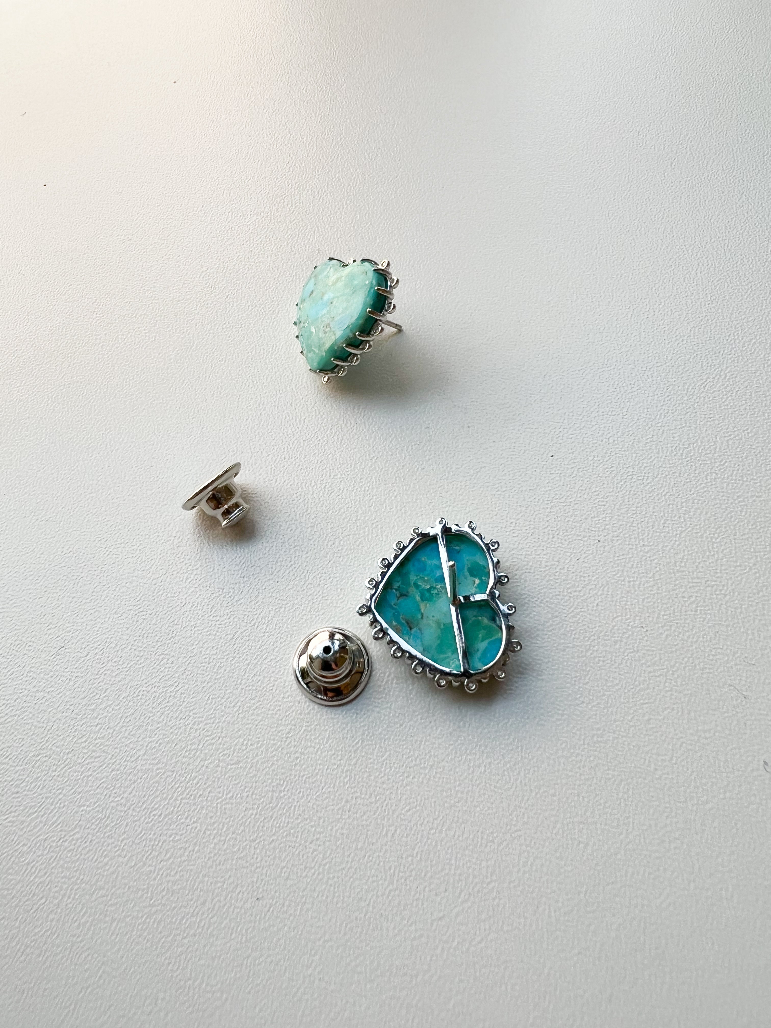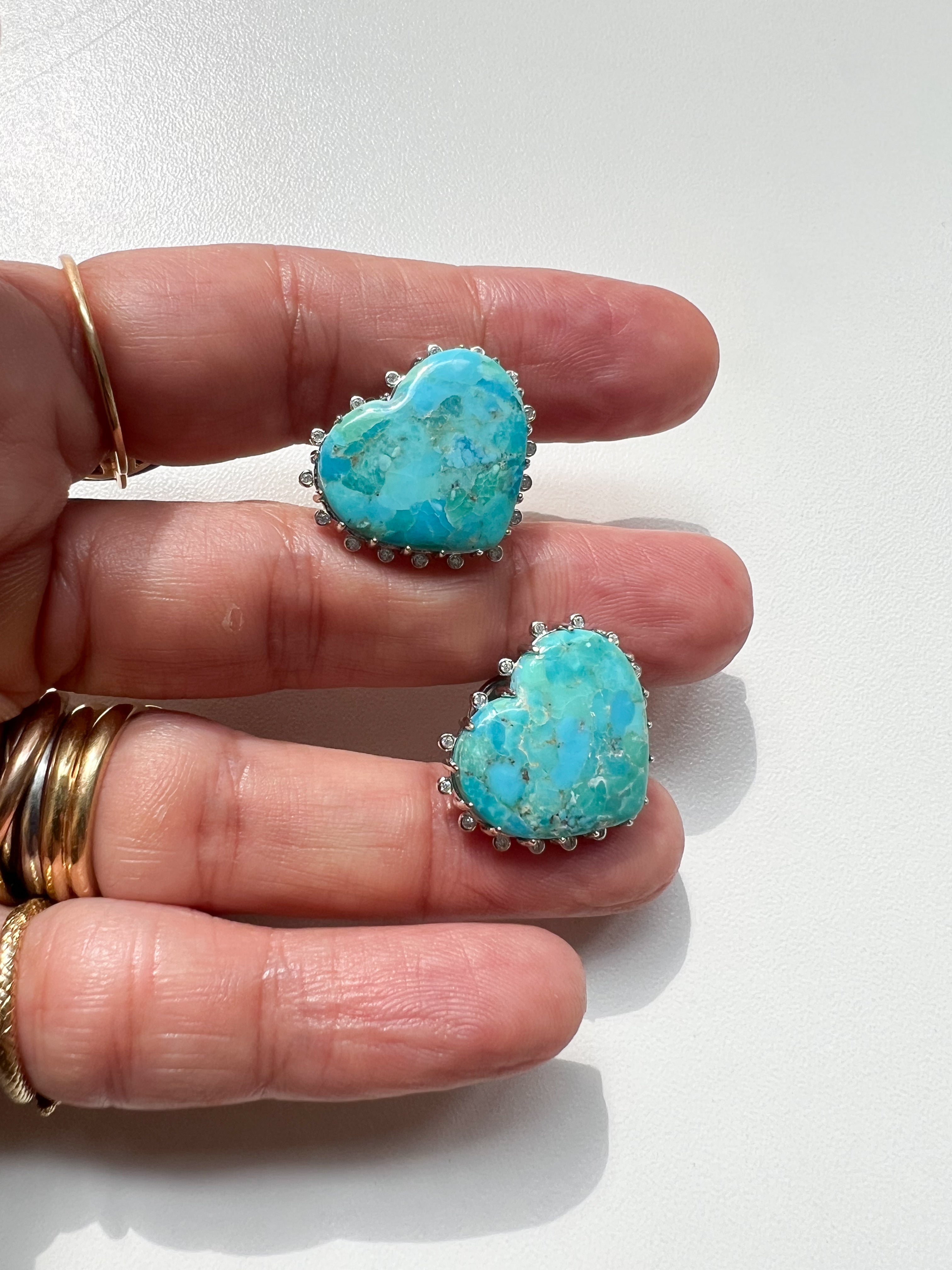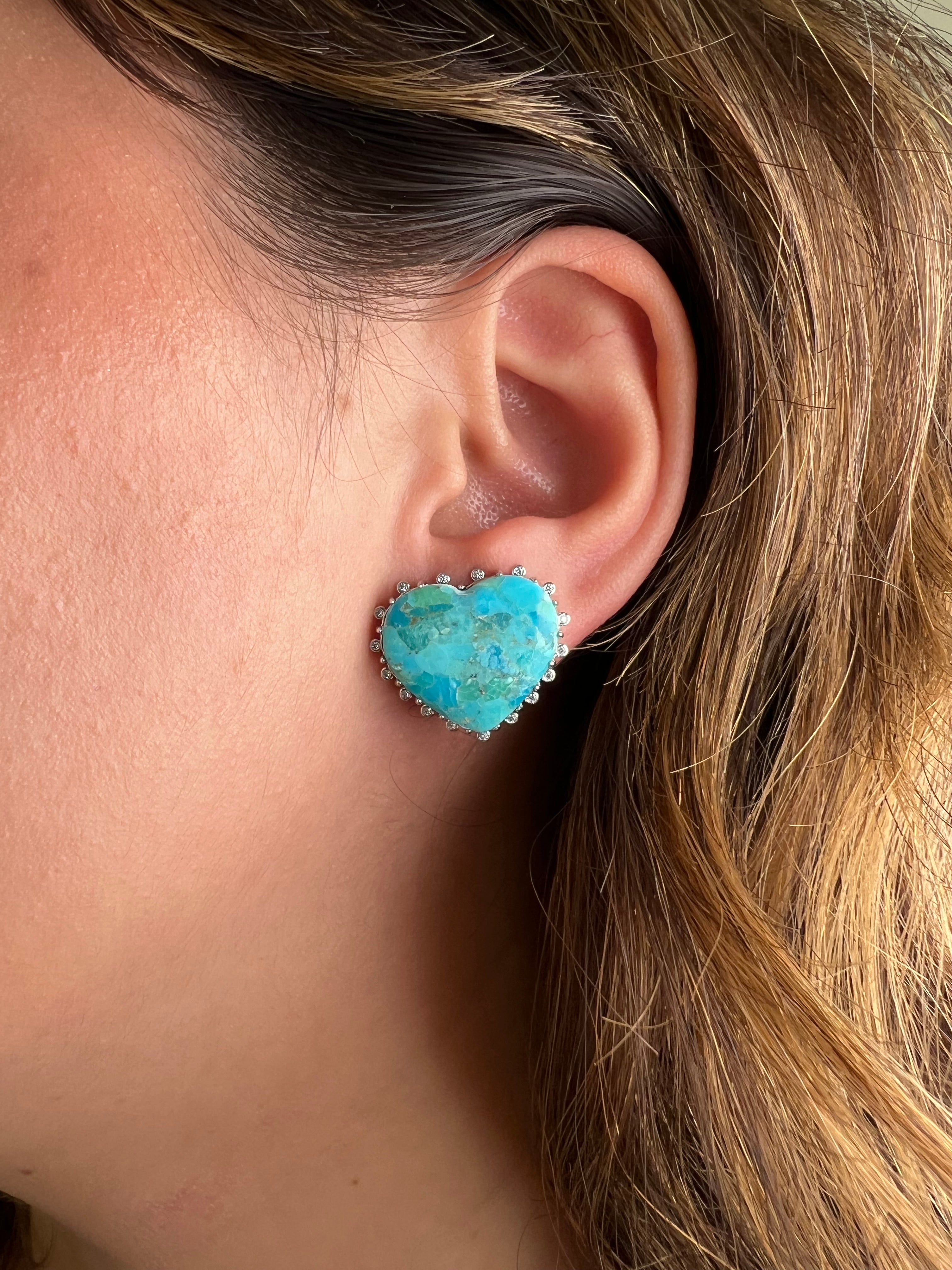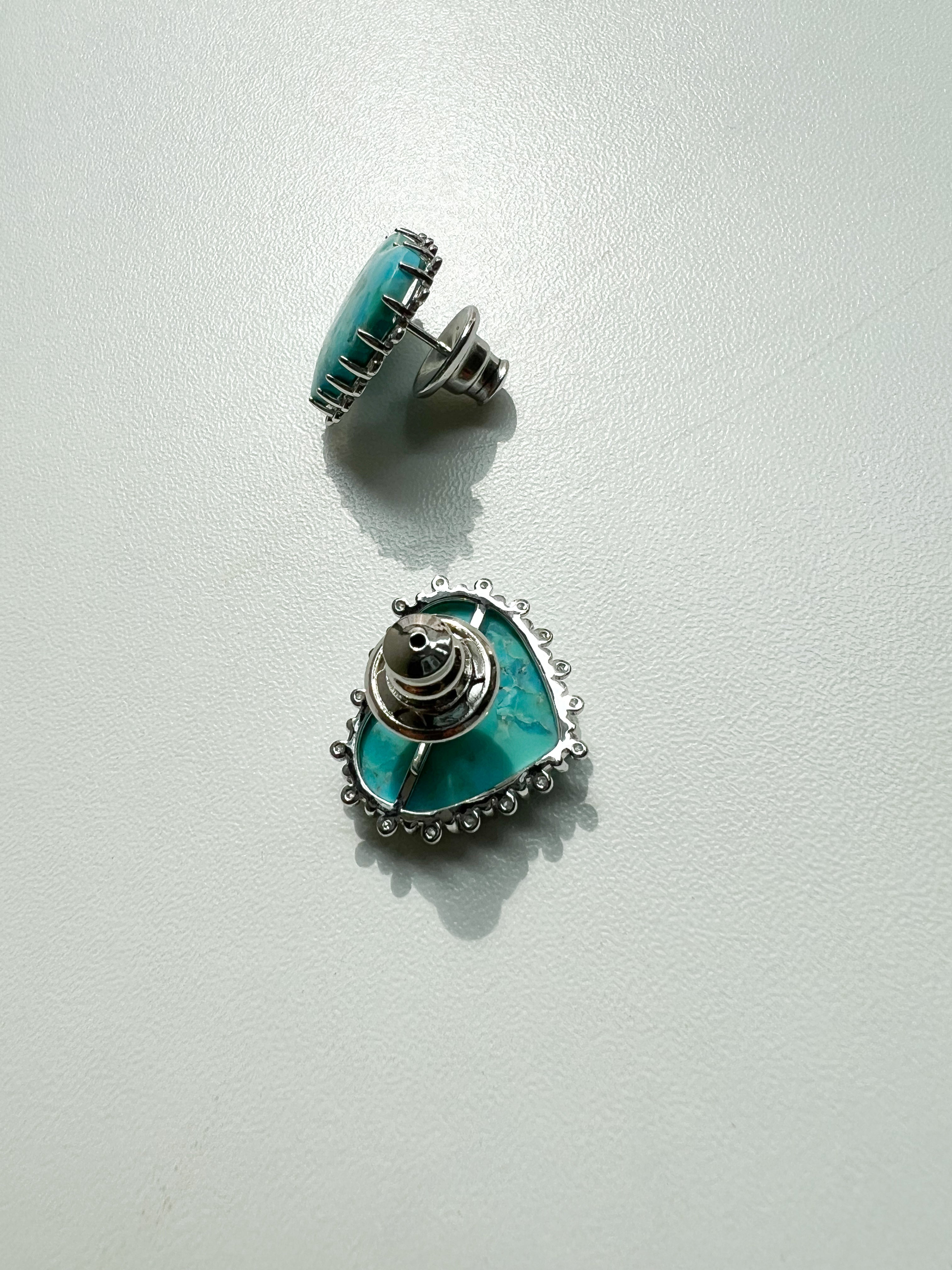Brinco em formato de coração confeccionado em prata 925 com banho de ródio para maior durabilidade e brilho. Apresenta turquesa natural como pedra central, cercada por delicada cravação de zircônias que realçam sua beleza. A combinação do azul vibrante da turquesa com o acabamento prateado oferece sofisticação e versatilidade para diversas ocasiões.