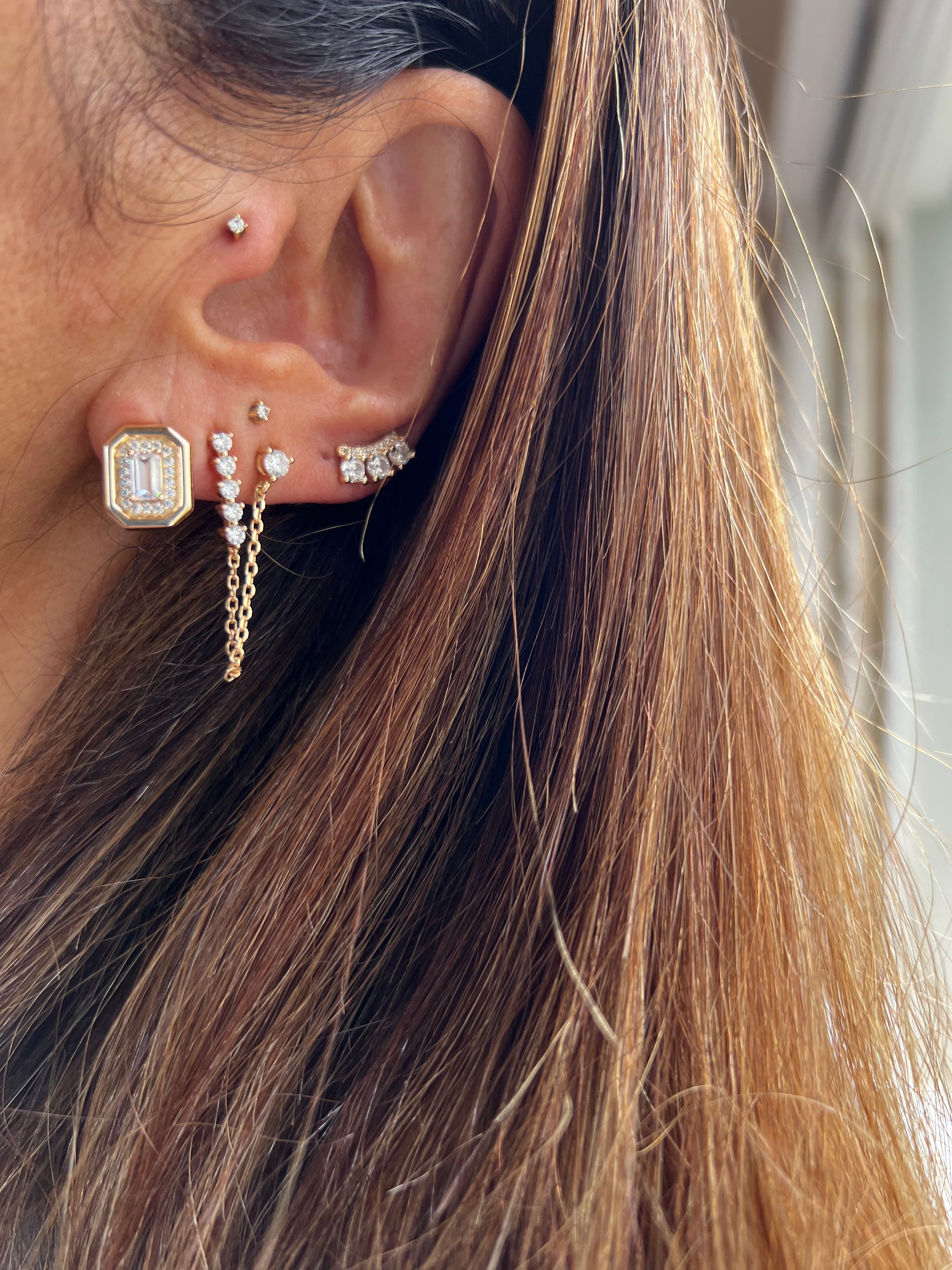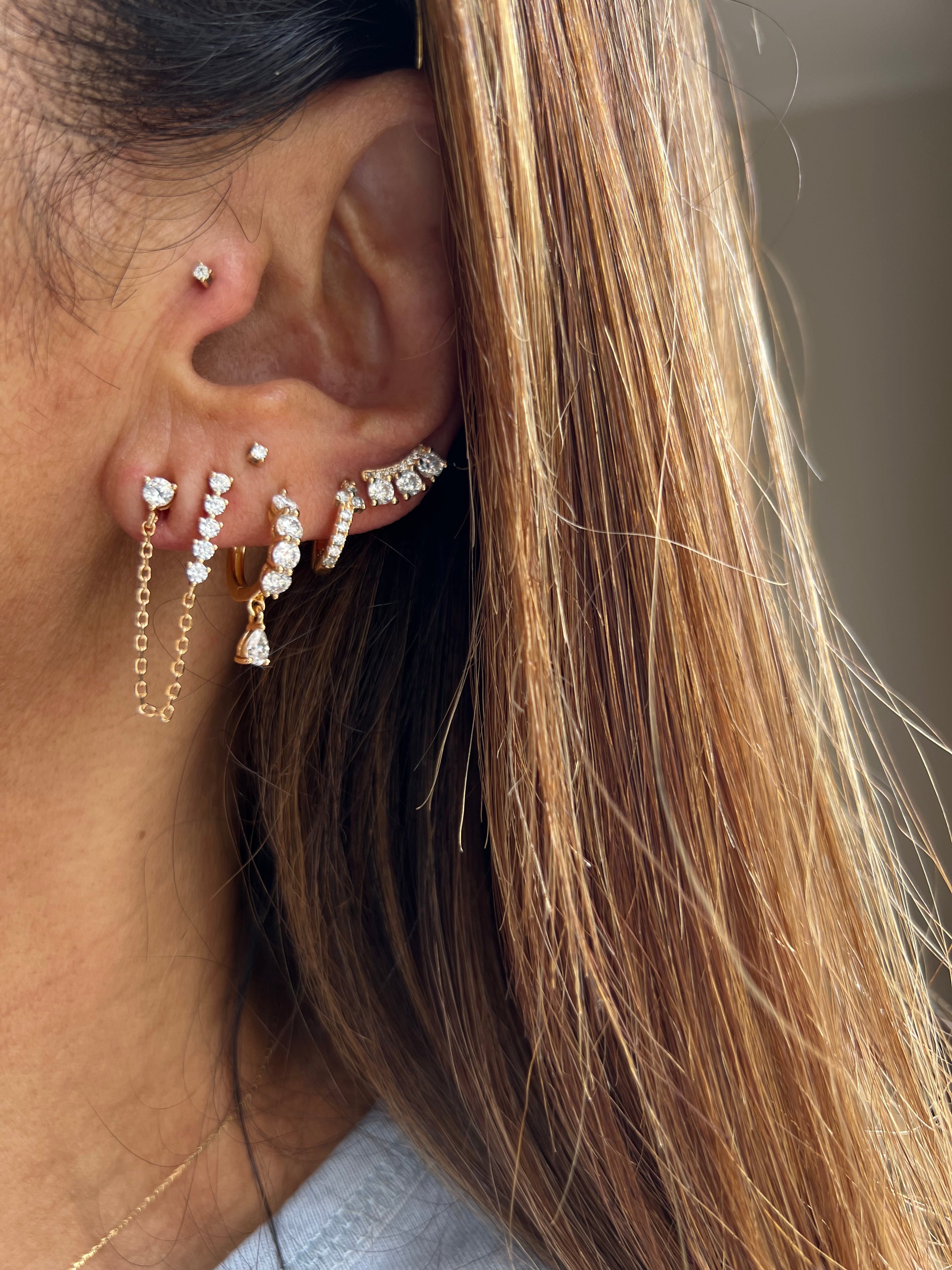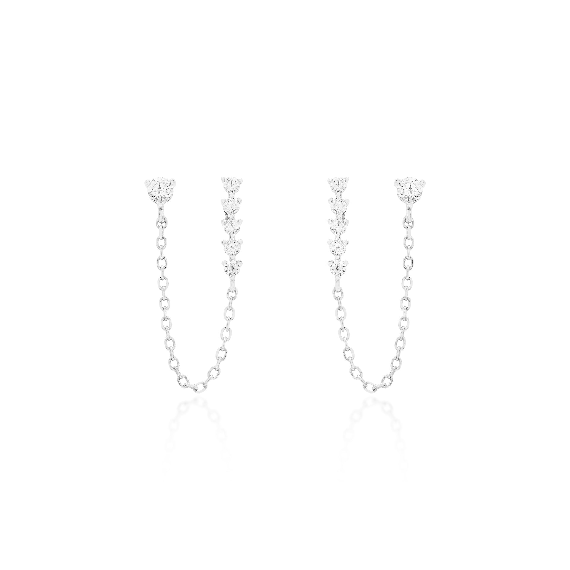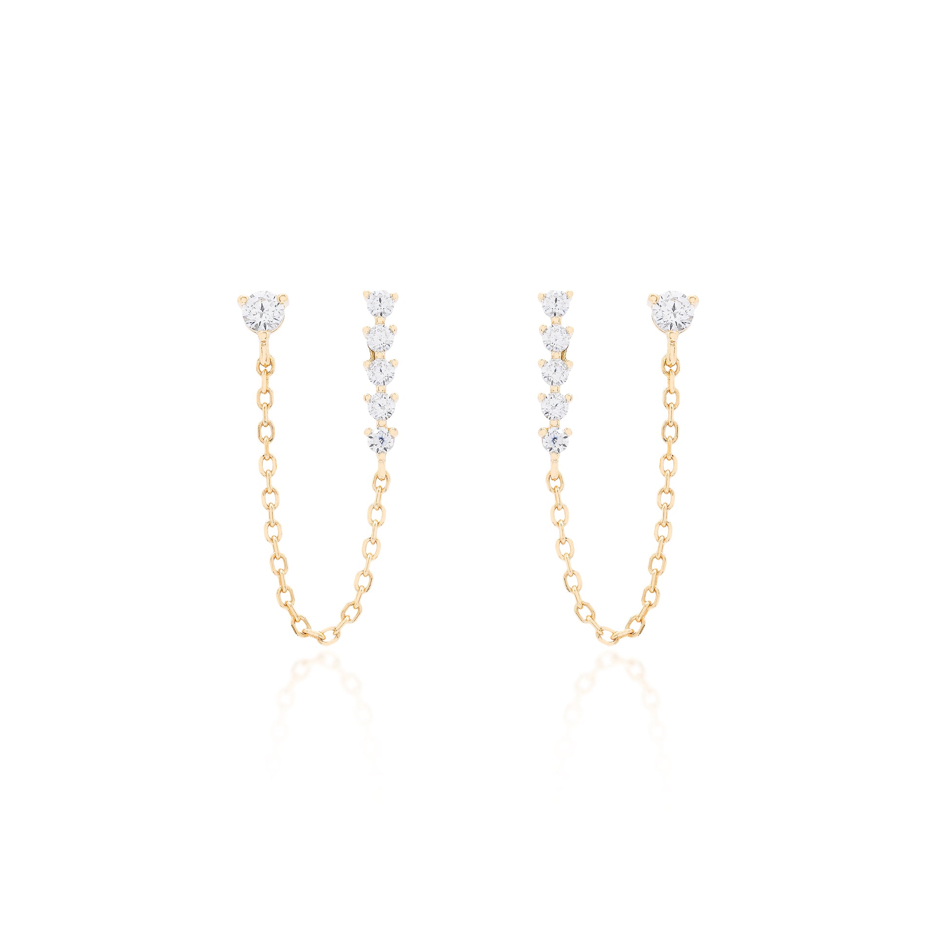 Designe exclusivo, Brinco Esther com corrente de prata 925, banhado com ouro e ródio e cravações de zircônias para dois furos. Brilhante e durável com qualidade e elegância em um só produto.