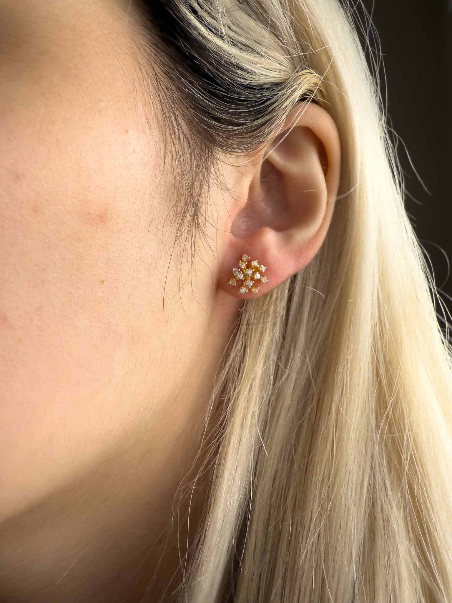 Conheça o luxuoso brinco floco de neve, feito em prata 925 com banho de ouro e detalhado com brilhantes zircônias. Adicione um toque de elegância e sofisticação ao seu visual com este incrível acessório. Perfeito para qualquer ocasião, seja para realçar o seu look ou presentear alguém especial.