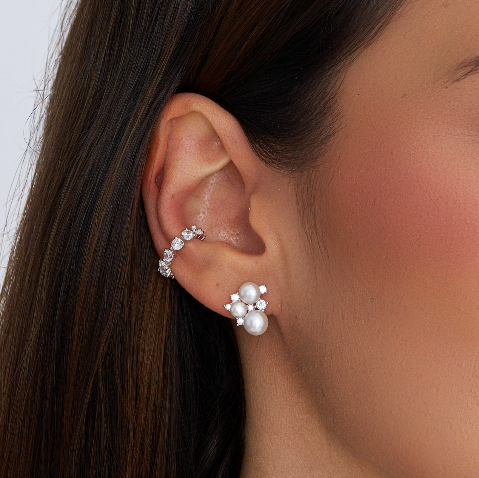 O Brinco Manon é uma peça sofisticada e versátil que combina o brilho da prata 925 com o banho de ródio e a delicadeza de três pérolas brancas de diferentes tamanhos. Além disso, possui zircônias que adicionam ainda mais elegância à peça. Adquira já e complemente seu visual com muito estilo.