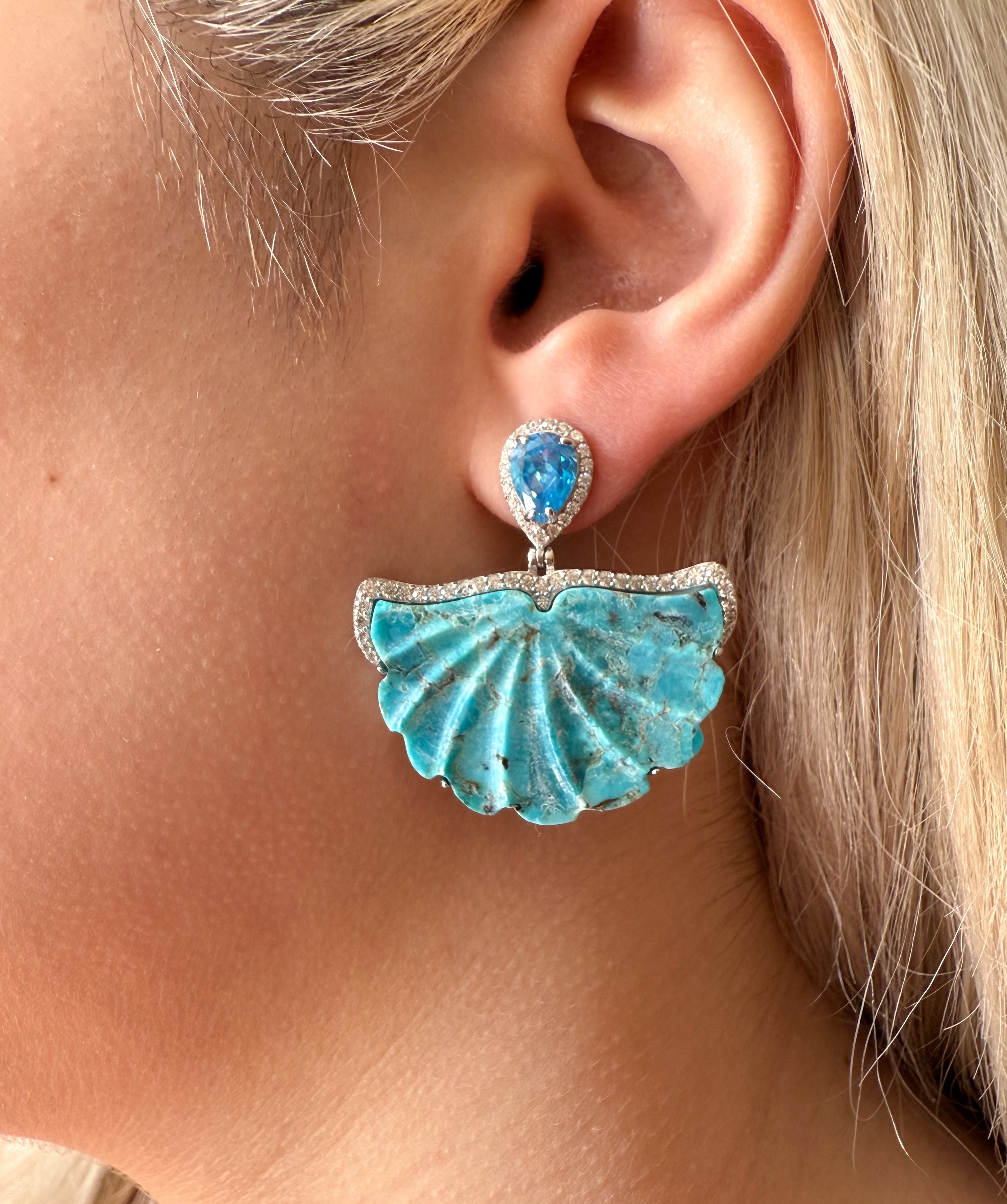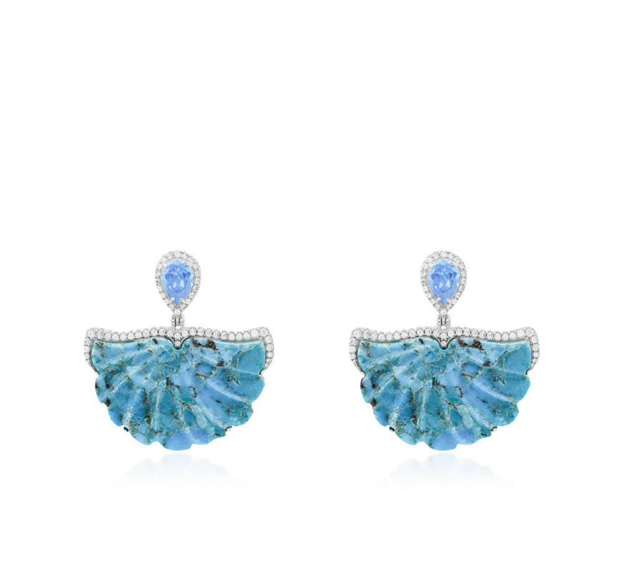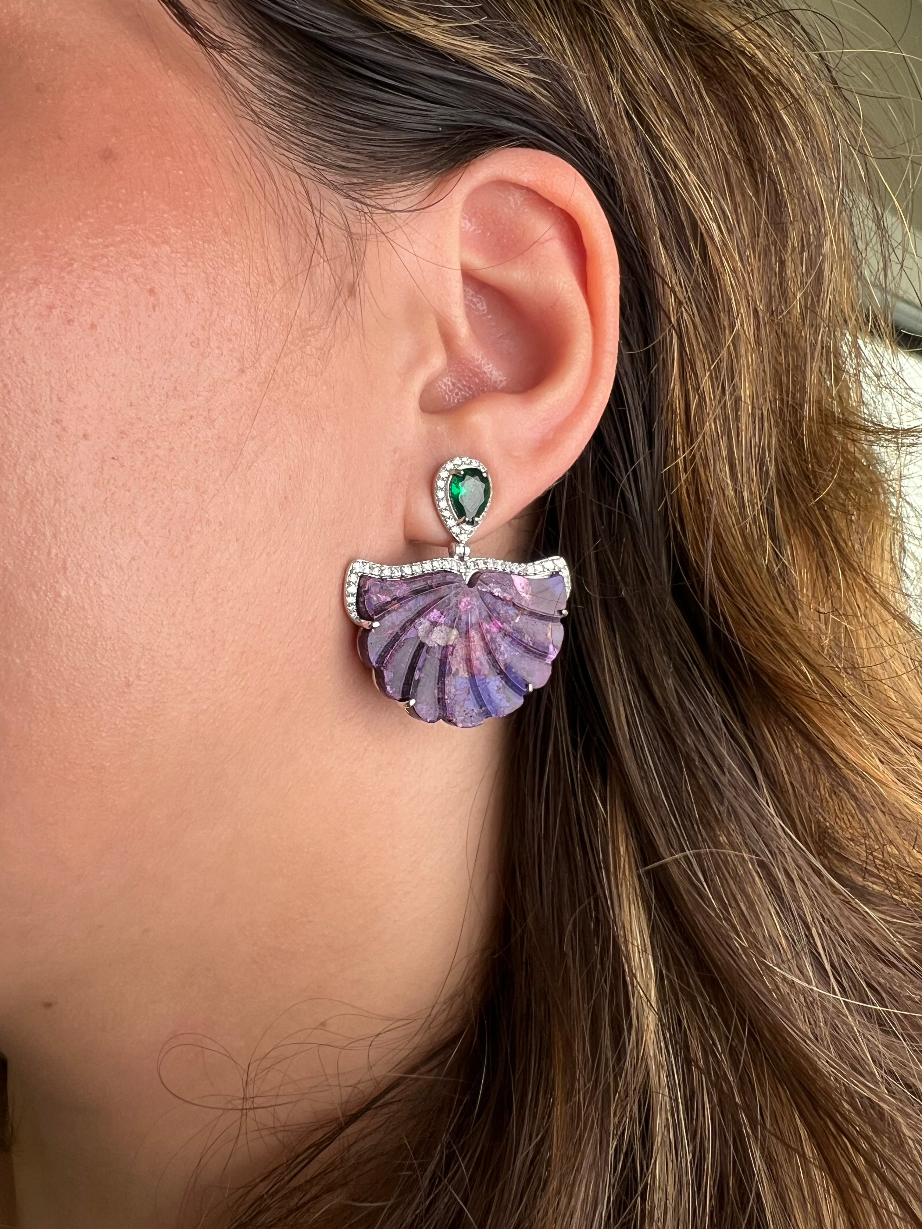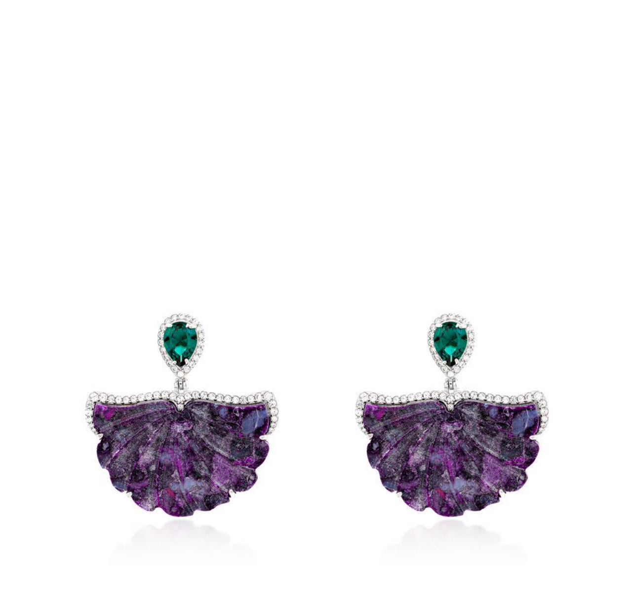 Brinco Cala combina prata 925 com banho de ródio para durabilidade superior e brilho duradouro. Apresenta turquesa roxa exclusiva, complementada por gota de topázio verde e detalhes refinados em zircônias e turquesa com topázio azul Uma peça de joalheria contemporânea que equilibra sofisticação e expressão individual.