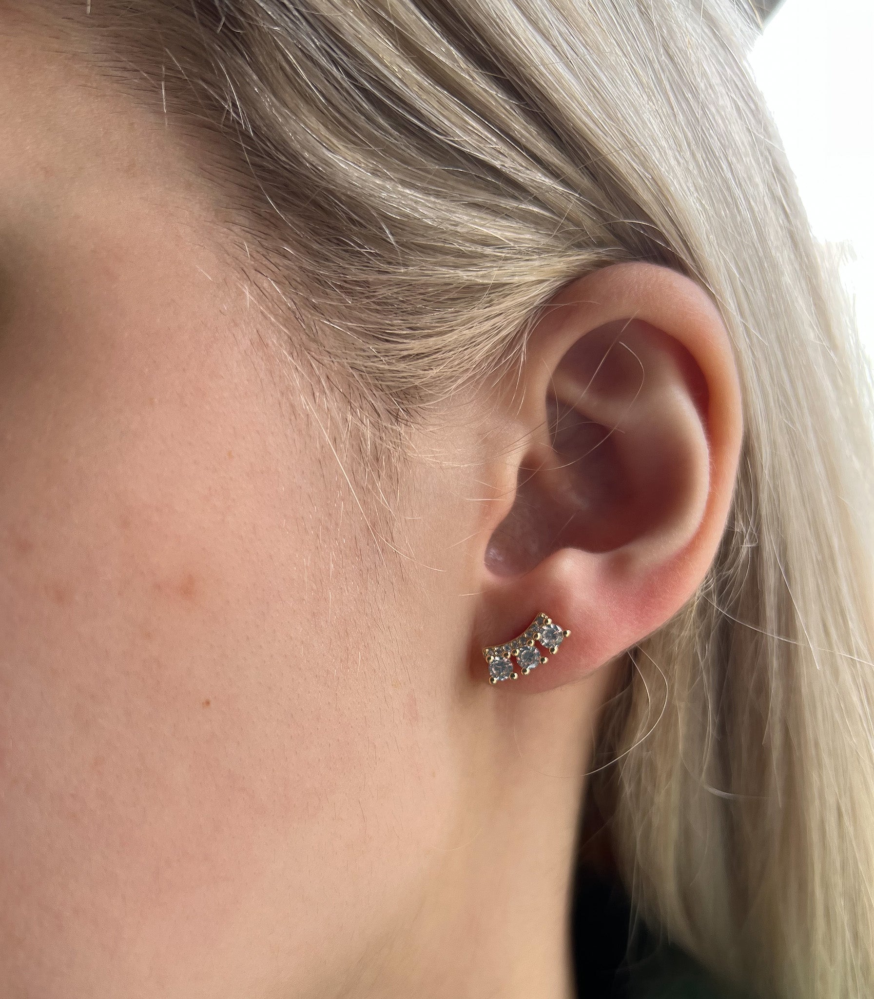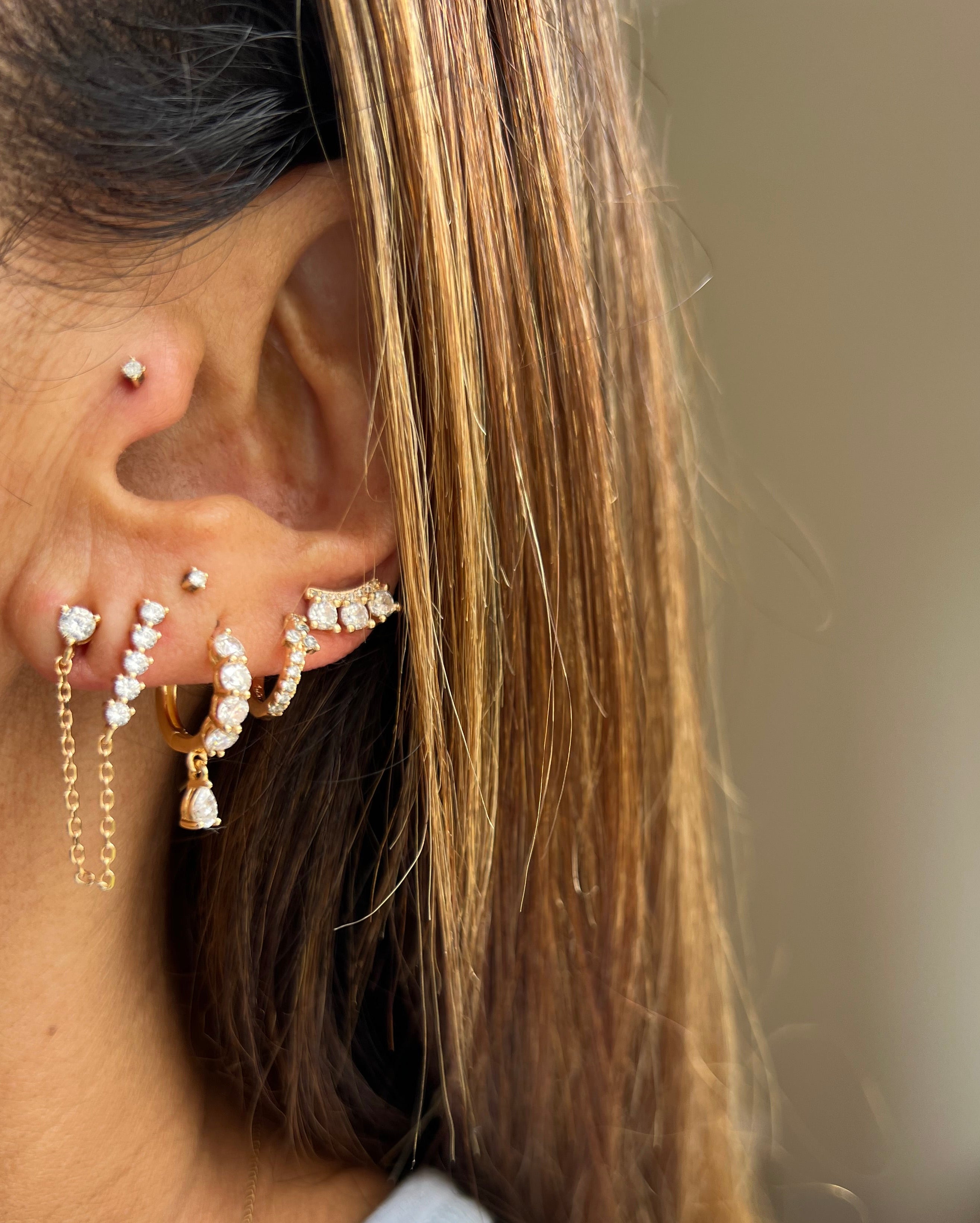 Brinco de prata 925 com banho de ouro e cravações de zircônias. Feito com materiais de alta qualidade, este brinco adiciona um toque elegante e sofisticado ao visual. Perfeito para qualquer ocasião, garantindo um brilho especial em qualquer look. Aproveite a durabilidade e o estilo deste brinco Sharon.