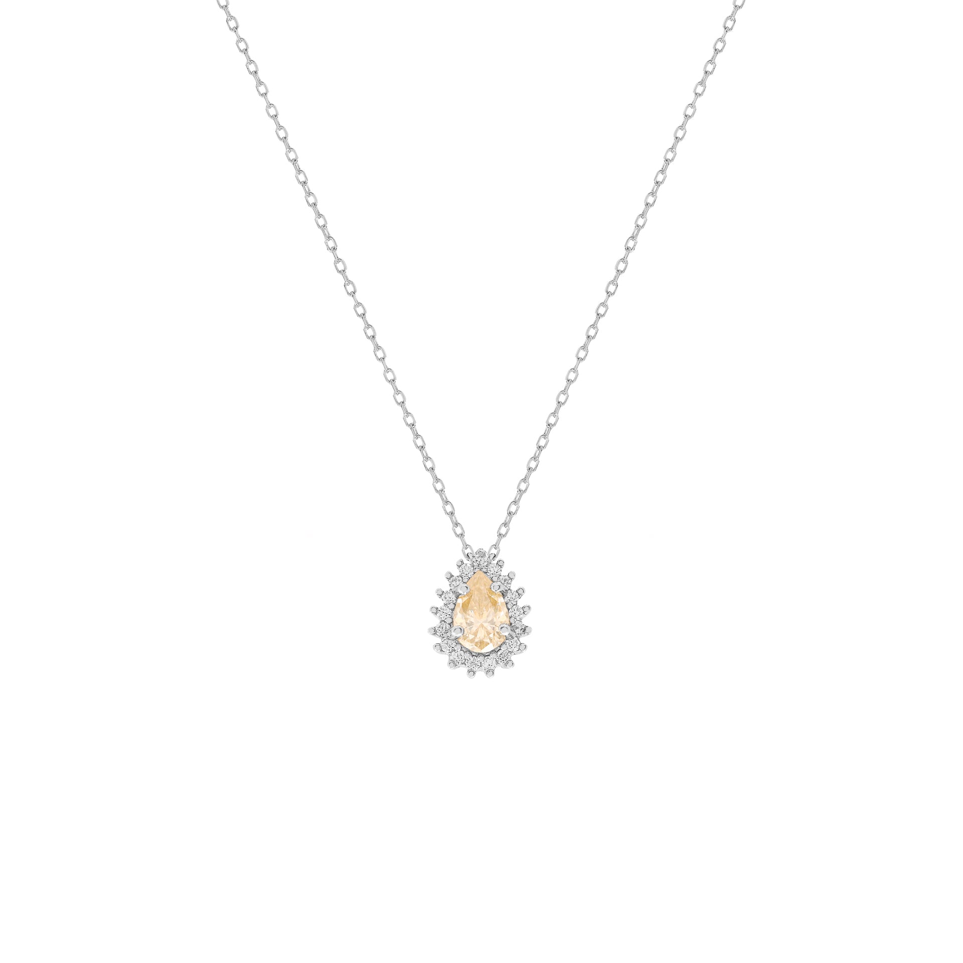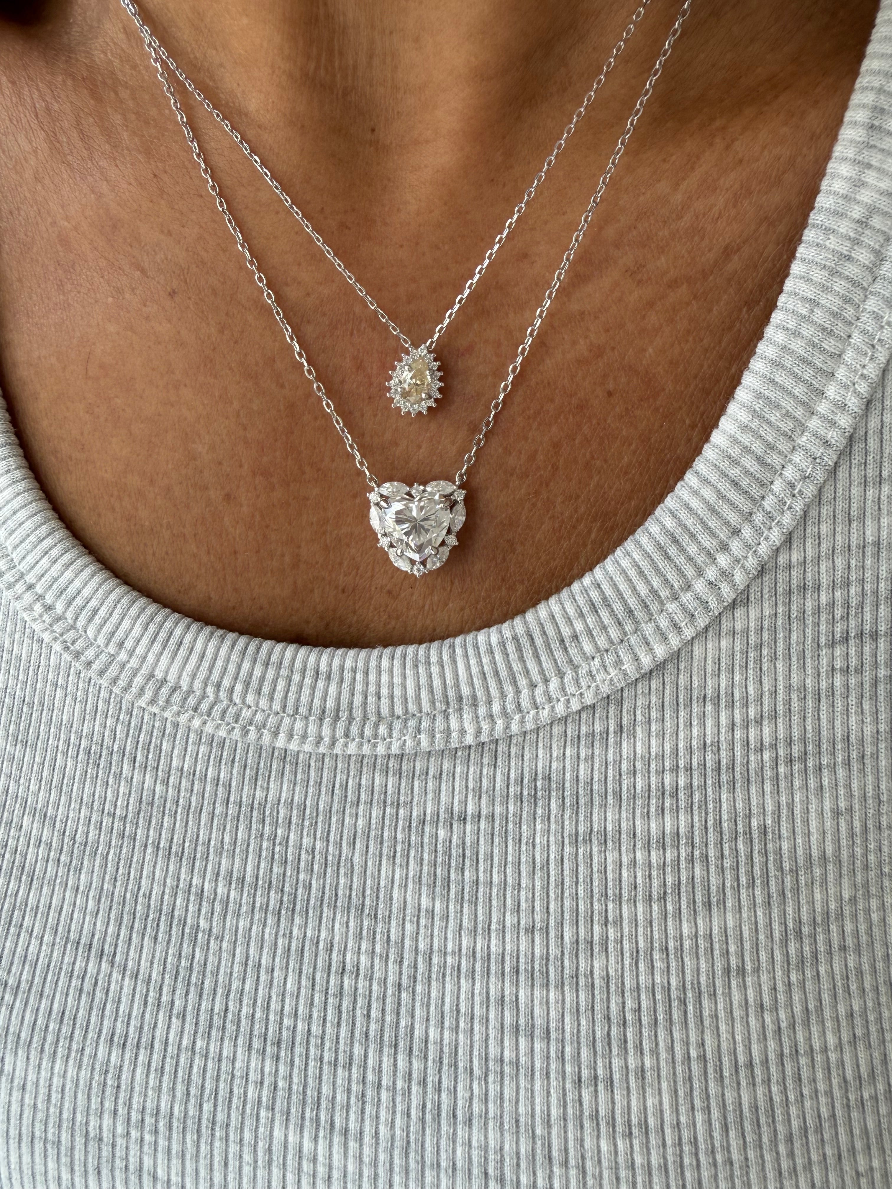 O Colar Gota Princess Moissanite é confeccionado em prata 925 com banho de ródio, garantindo maior durabilidade e resistência à oxidação. A pedra fancy de 4x6mm, complementada por moissanites de 0,49 ct, proporciona um brilho excepcional e uma estética refinada, ideal para ocasiões especiais.