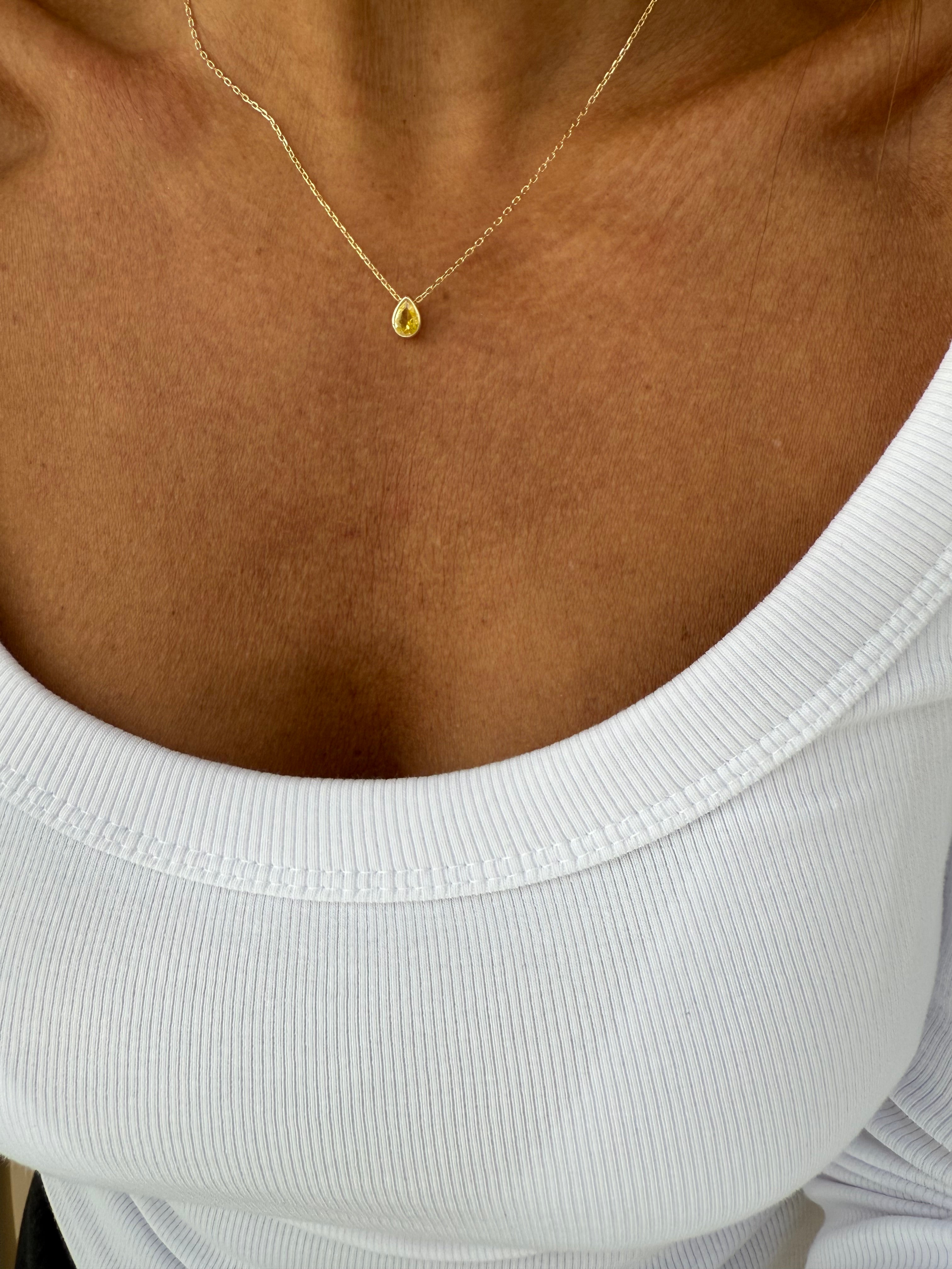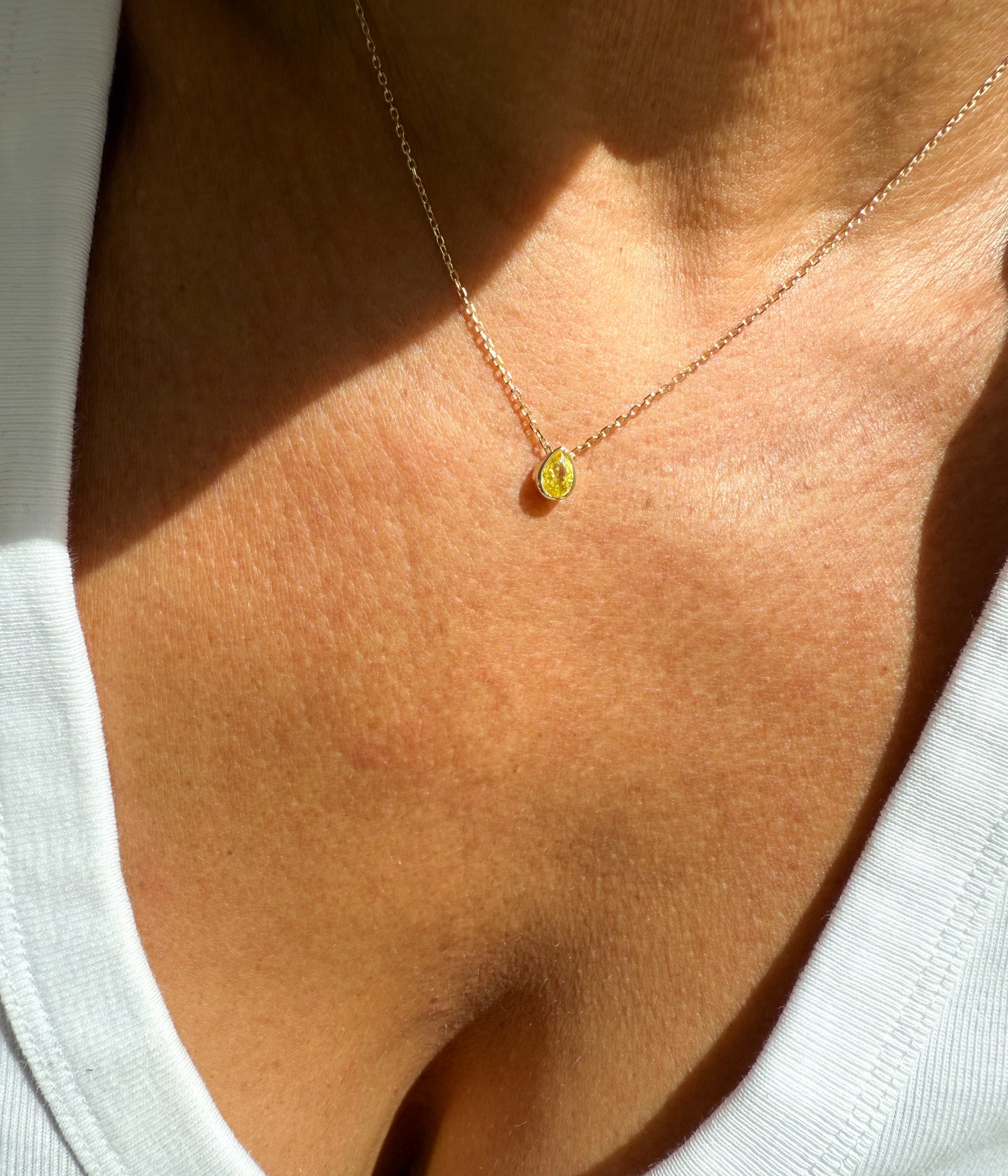 O Colar Gota Funcy é feito de prata 925 com banho de ouro 18k, e possui uma bela gota de yellow fancy cravada com técnica inglesa. Seu comprimento de 40 cm é ideal para realçar a beleza do seu colo, além de contar com extensores de 5 cm para um ajuste perfeito. Adicione elegância e sofisticação ao seu visual com este colar excepcional.