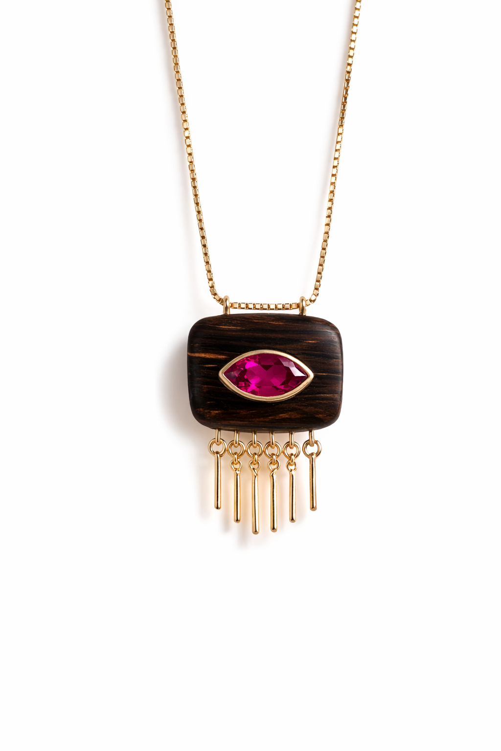 O Colar Madeira e Navete é um acessório elegante, fabricado com banho de ouro 18k, apresentando um navete de cristo em tom fúcsia. Com 45 cm de comprimento e 5 cm adicionais em extensores, oferece versatilidade e conforto para diferentes estilos, complementando de forma sofisticada qualquer visual.