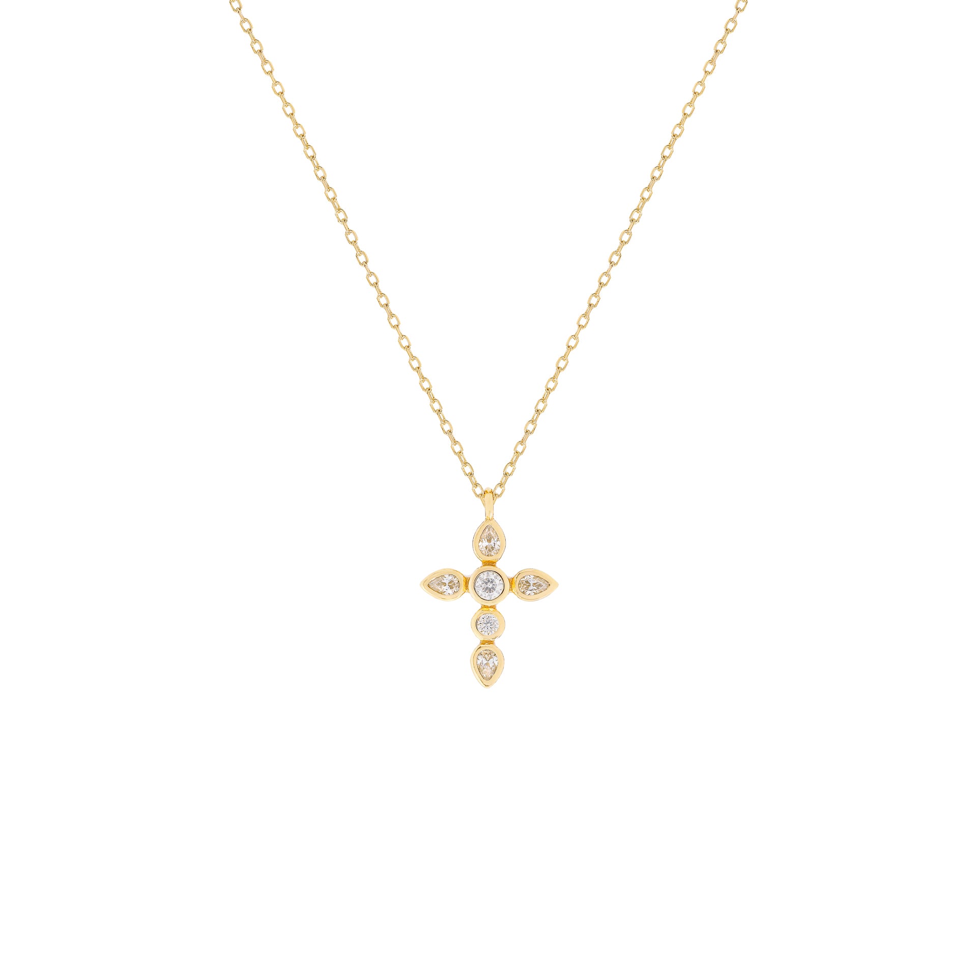 O Colar mini Cruz moissanite é uma elegante peça de joalheria feita em prata 925 com banho de ouro 18k. Possui uma corrente de 40 cm, com duas argolas adicionais para ajustar o comprimento para 43 e 45 cm. Com pedras moissanite, trazendo brilho e sofisticação ao seu visual. Adicione um toque de beleza e glamour ao seu estilo.