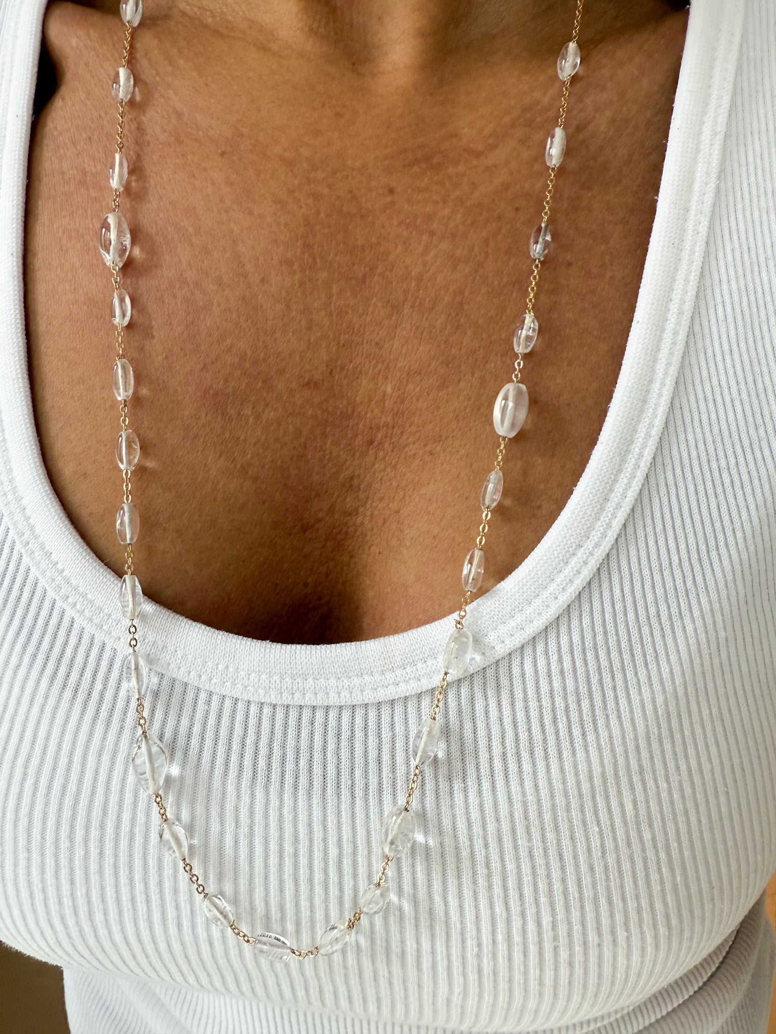 Obtenha um visual elegante com o Colar pedras naturais Tai. Feito com calcedônia e banho de ouro, este colar de 70 cm com extensores adicionais de 5cm traz um toque sofisticado à sua aparência. Aprecie a beleza das pedras naturais e aproveite os benefícios que elas oferecem.