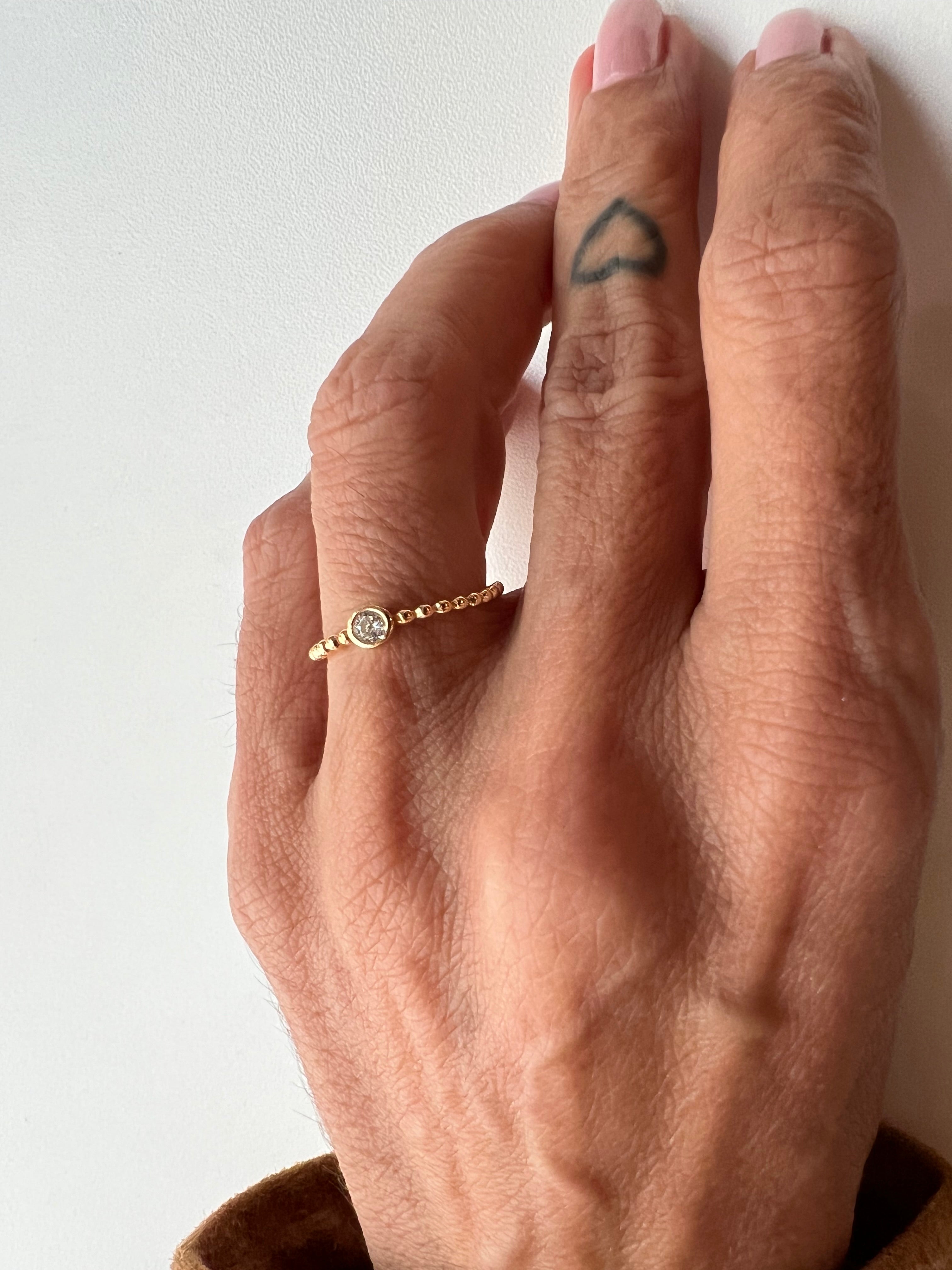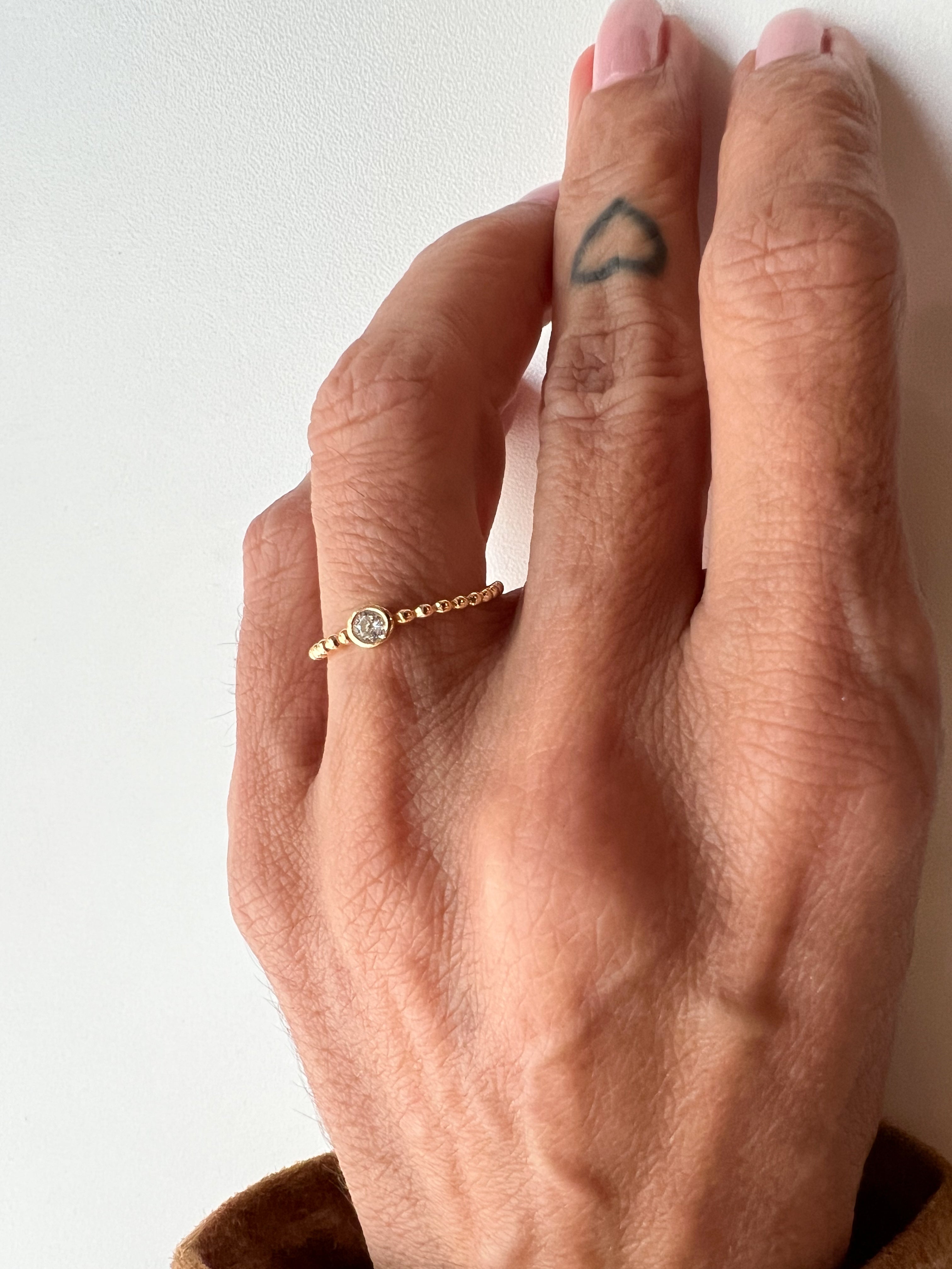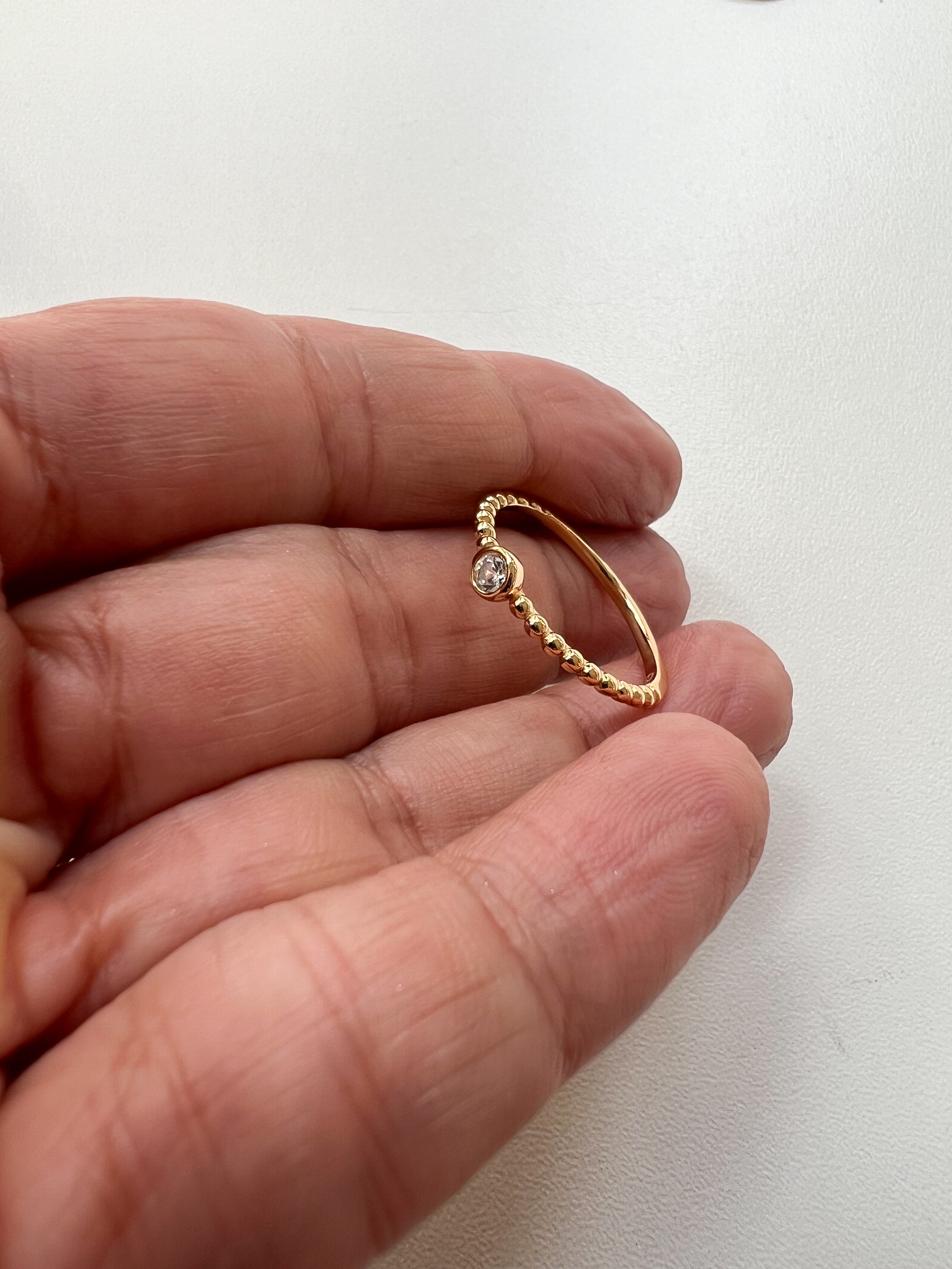 Anel Pétit Poá confeccionado em prata 925 com sofisticado banho de ouro 18k. Apresenta delicado design pontilhado e é adornado com zircônias de alta qualidade que proporcionam brilho excepcional. Uma peça versátil que combina elegância e durabilidade para complementar diversos estilos.