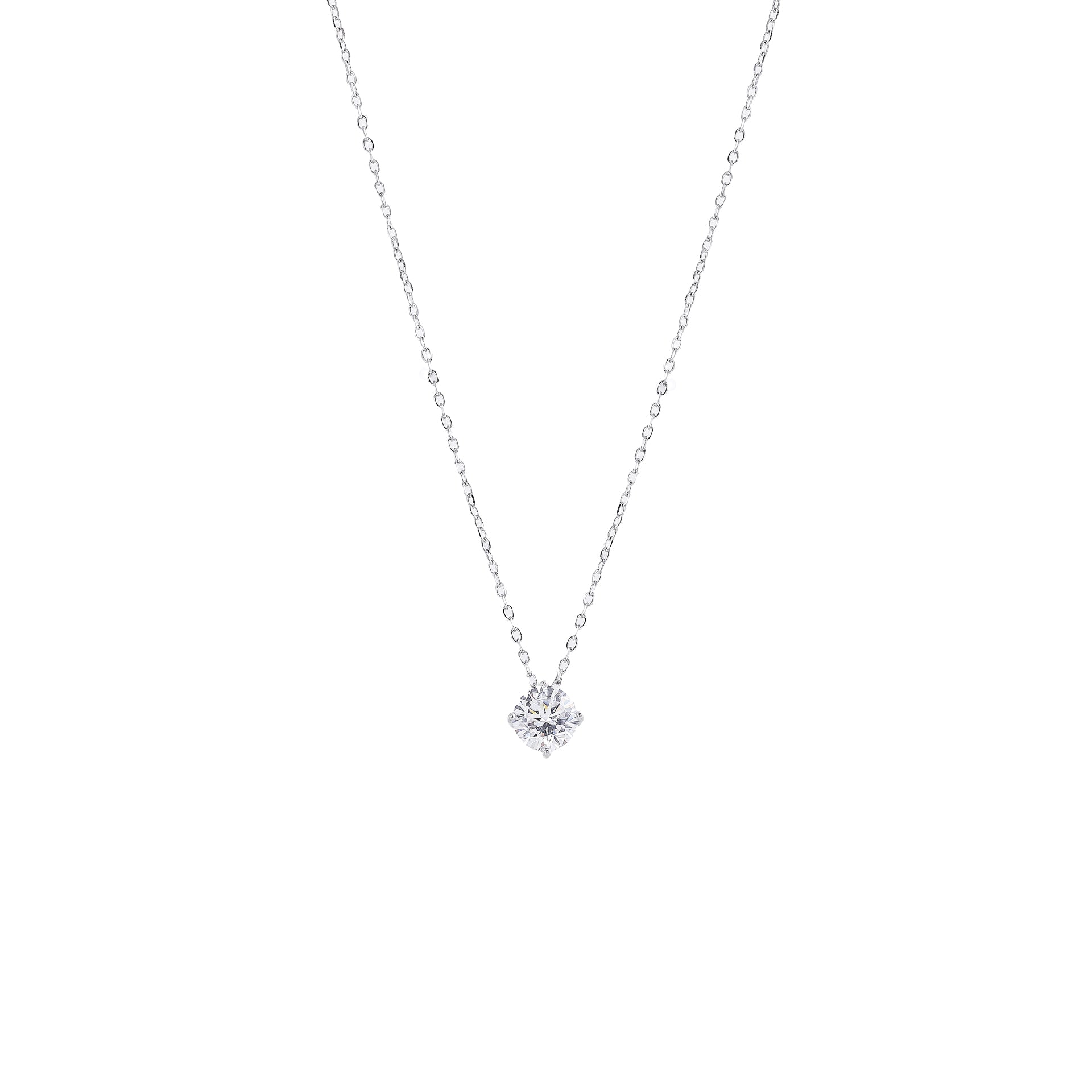 Colar em Prata 925 com banho de ródio, medindo 45 cm com extensor, adornado com um delicado ponto de luz em zircônia de 6 mm. Elegância e sofisticação em um design atemporal.