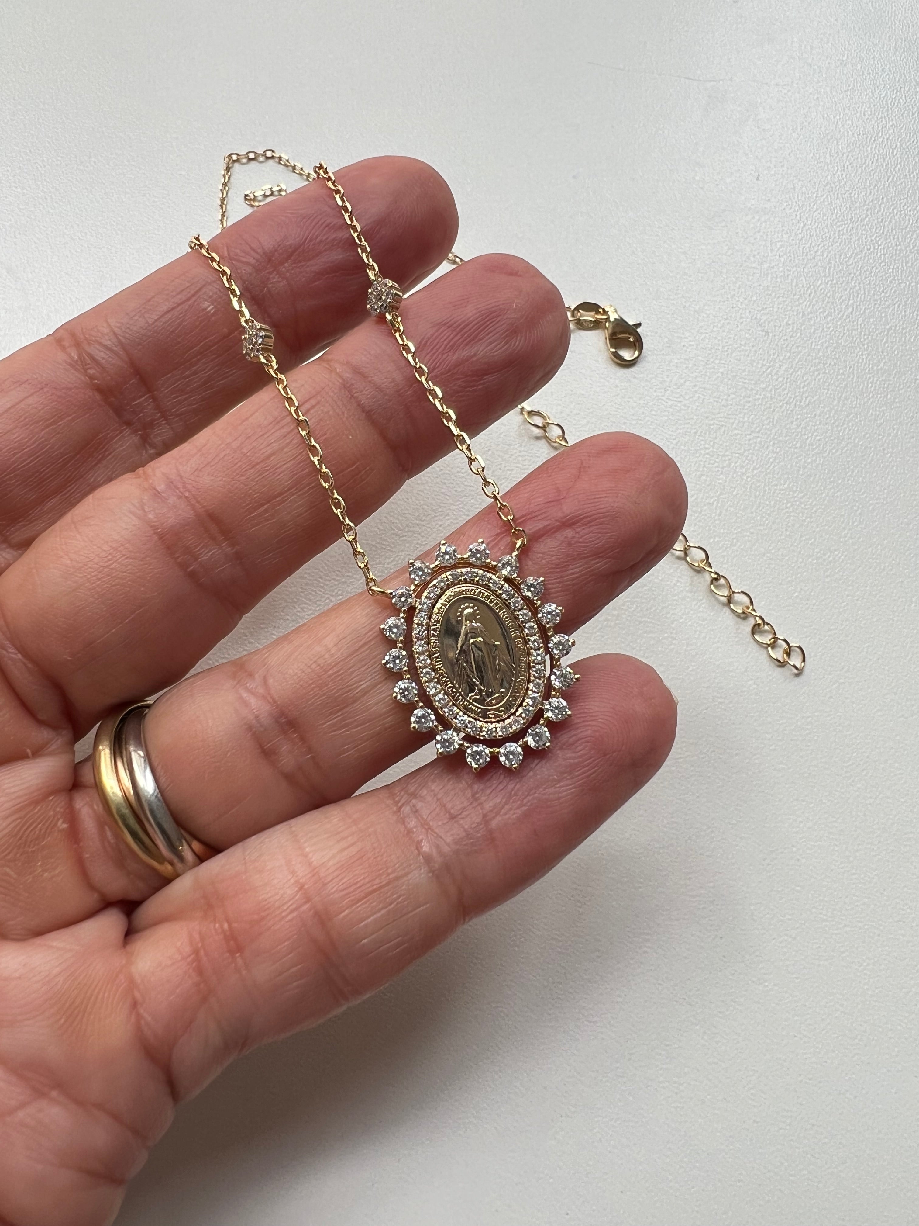 Essa medalha Milagrosa de Nossa Senhora das Graças é feita em Prata 925 com banho de ouro 18k e detalhes em zirconias. Com medidas de 45cm, ela é perfeita para demonstrar sua devoção com elegância. Um presente significativo que traz proteção e bençãos em todos os momentos.