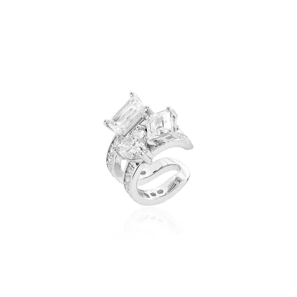 O Piercing de prata 925 com banho de ródio cravado de zircônias e três cristais de 3 formatos diferentes é a escolha perfeita para quem deseja adicionar um toque de brilho e elegância a seu visual. Feito com materiais de alta qualidade, este piercing é resistente e durável, proporcionando uma experiência confortável e sofisticada. Com um design único e detalhes impressionantes, ele certamente irá complementar qualquer look com um toque especial de glamour.