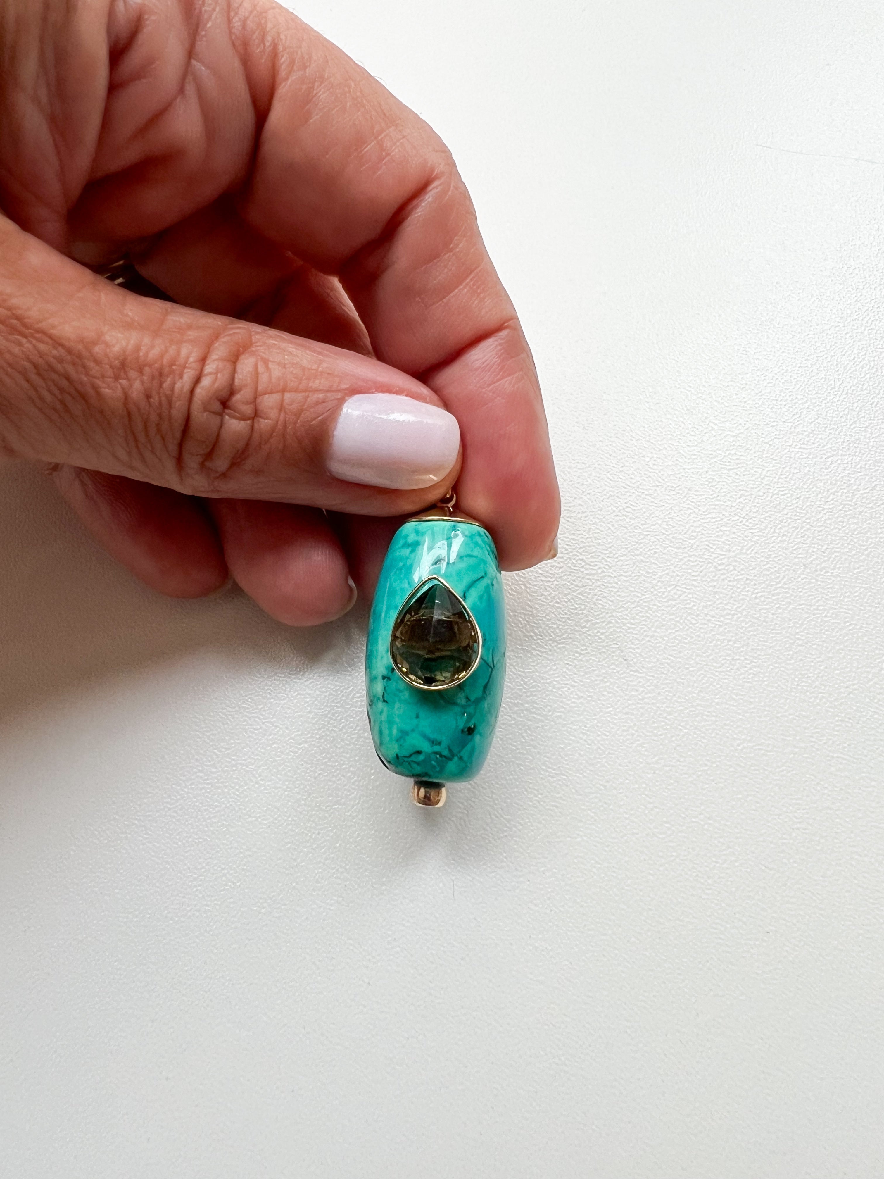 Obtenha um visual elegante e sofisticado com o Pingente Bojudo. Desenhado com uma linda pedra turquesa e gota fumê , banhado em ouro 18k, este pingente adicionará um toque de luxo às suas joias. Adquira já esta peça única e exiba seu bom gosto e estilo.