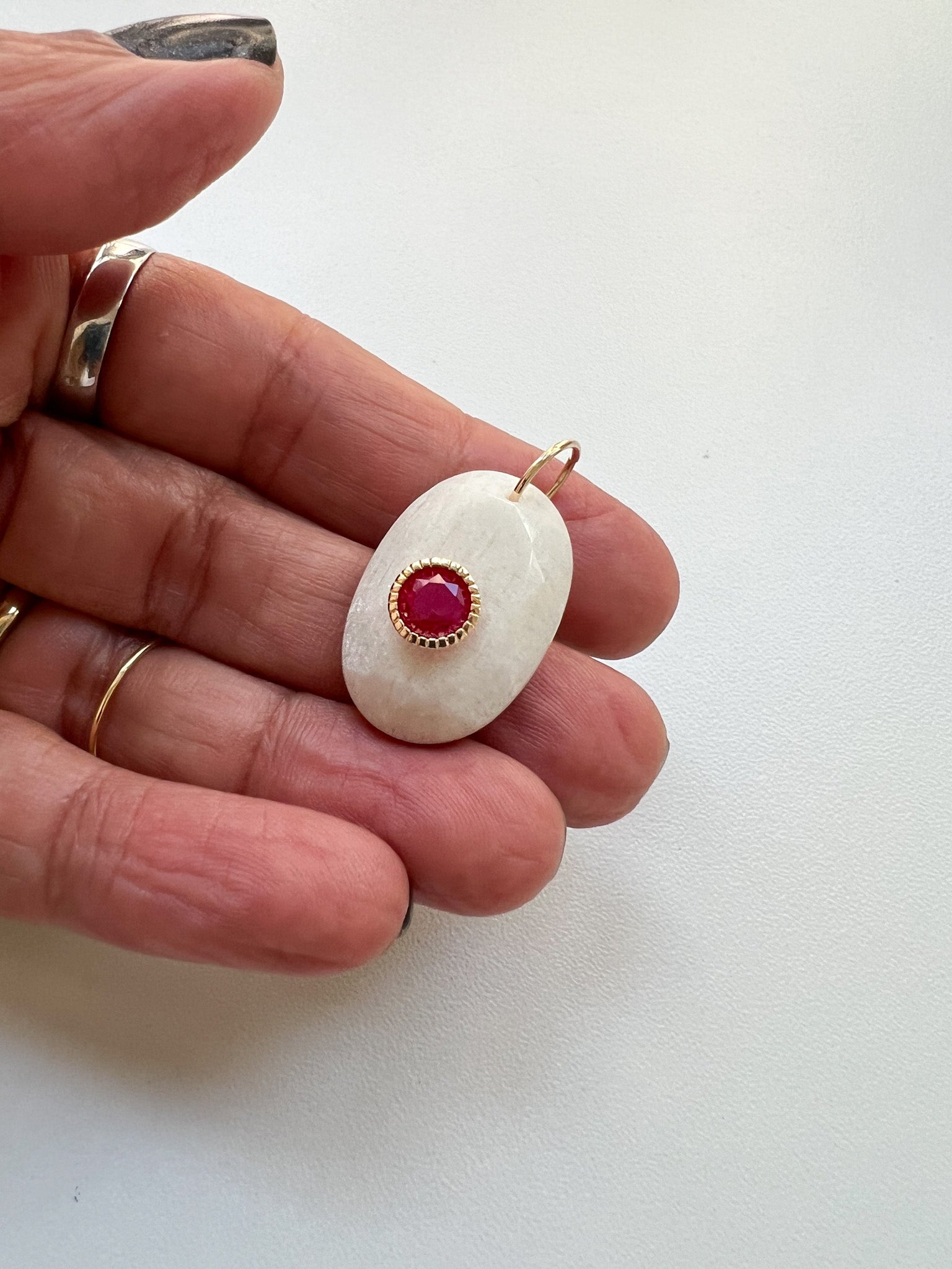 Este lindo pingente oval é feito com pedras naturais de amazonita bege, que são conhecidas por suas propriedades curativas e calmantes. O cristal cereja adiciona um toque de cor e energia positiva. Perfeito para adicionar um toque de estilo e bem-estar à sua vida.
