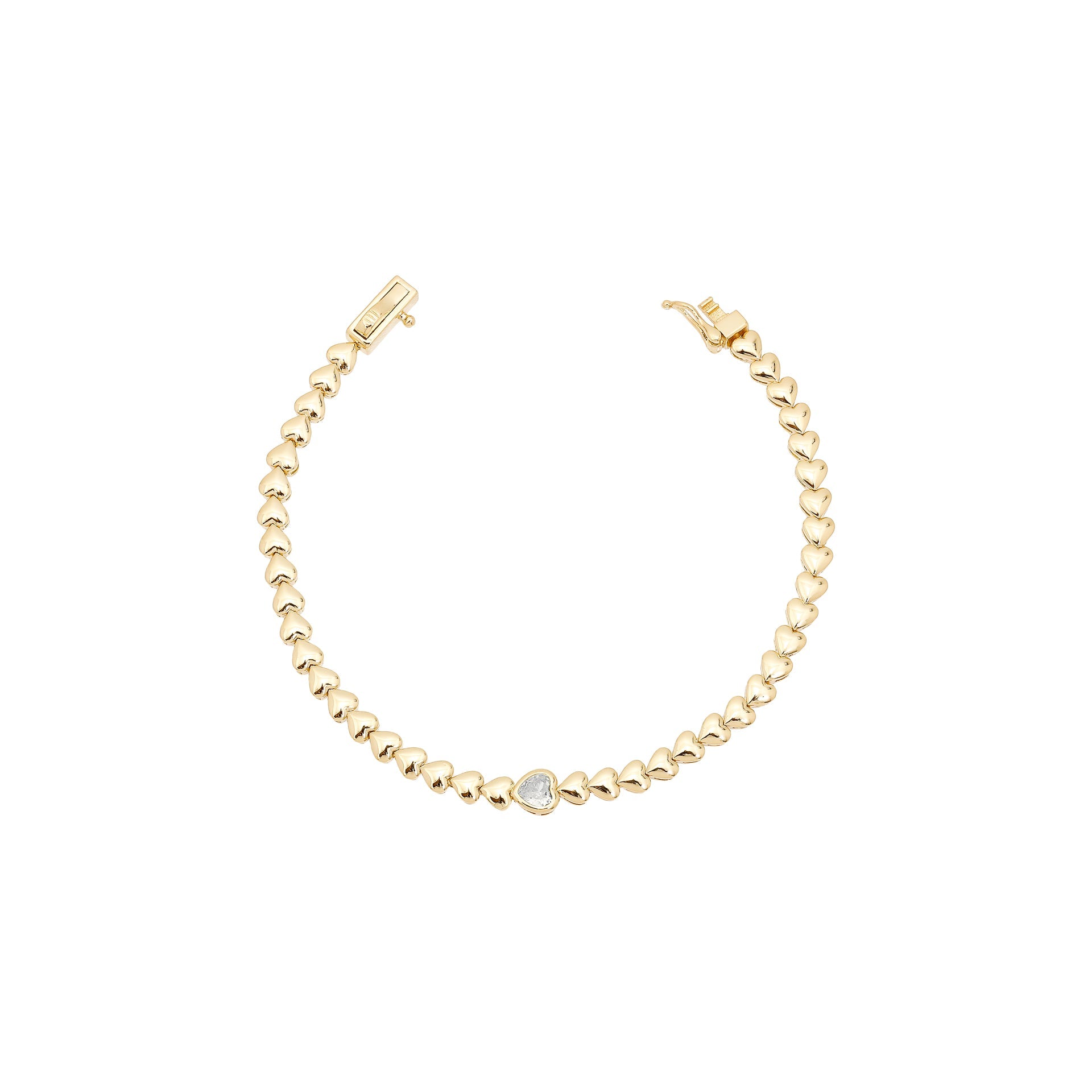 Esta pulseira de prata 925 com banho de ouro é a adição perfeita para qualquer coleção de acessórios. Com 17cm de comprimento e fecho caixa, é delicada e elegante, além de ser resistente e durável. Garanta um toque de sofisticação ao seu visual com esta pulseira de corações,o coração central de zircônias translúcidas ou fancy