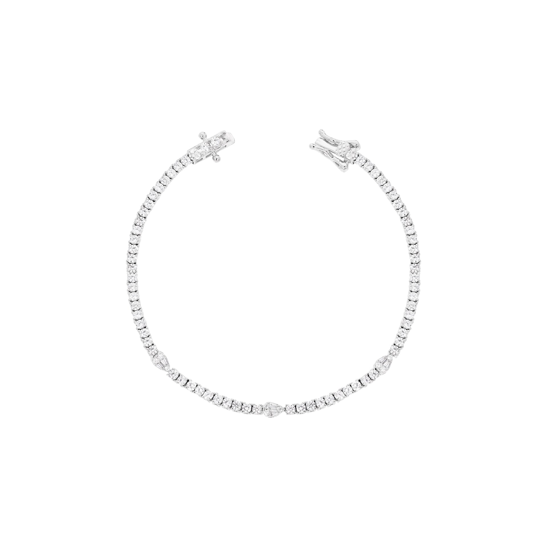A pulseira Riviera gotas é confeccionada em prata 925 com banho de ródio, garantindo durabilidade e resistência à corrosão. As zircônias de 2mm proporcionam um brilho sutil, enquanto o fecho de caixa com trava de segurança assegura a integridade do acessório. Com 17 cm de comprimento, é uma peça elegante para diversas ocasiões.