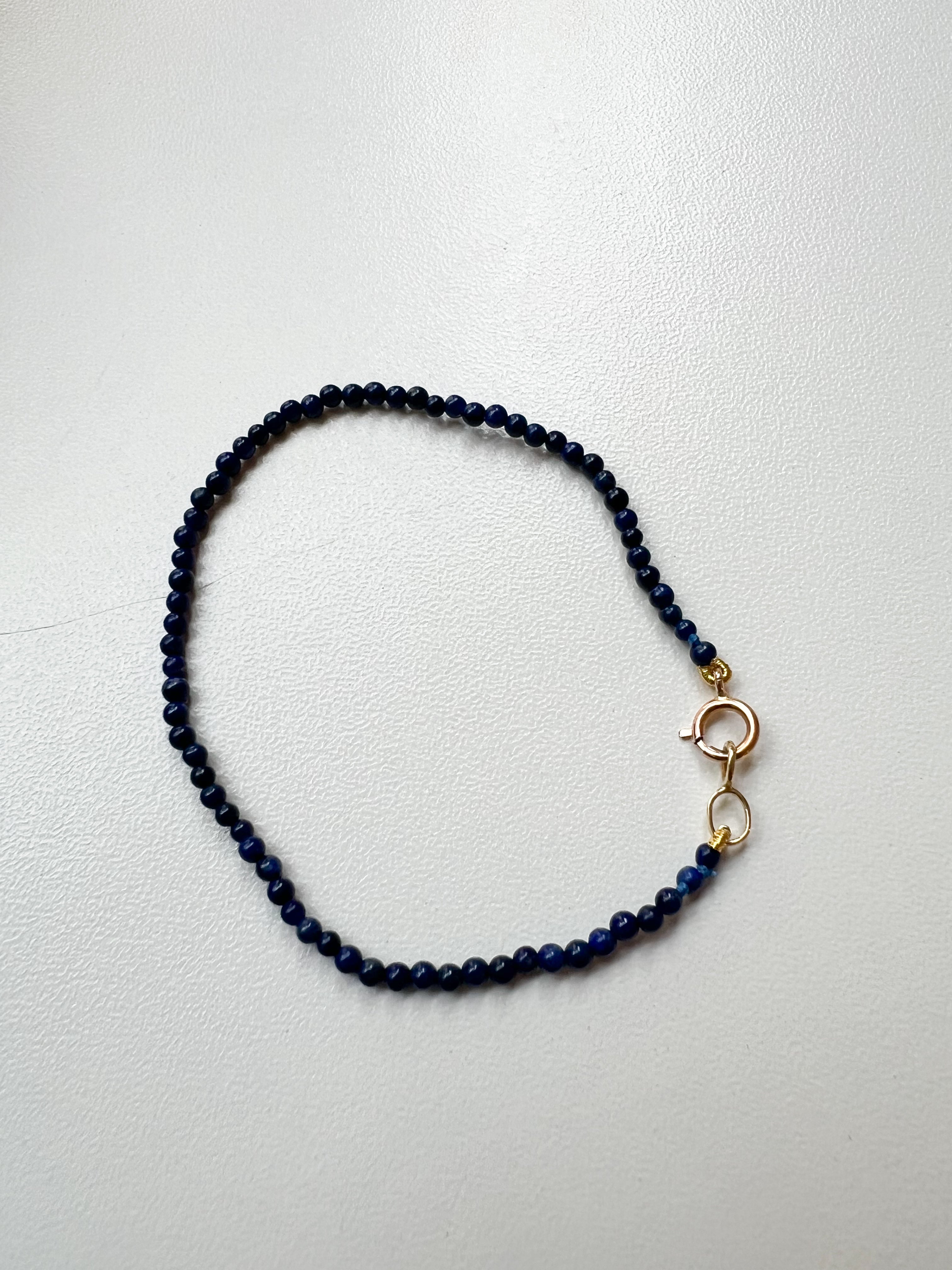 Encante-se com a pulseira Stone, confeccionada em ouro 18k e adornada com pedras naturais de Lápis Lazuli. Com 16 cm de comprimento, esta peça une sofisticação e energia calmante, realçando a beleza única do azul vibrante do Lápis Lazuli. Ideal para quem valoriza elegância e significado, é o toque perfeito para um visual refinado e sereno.