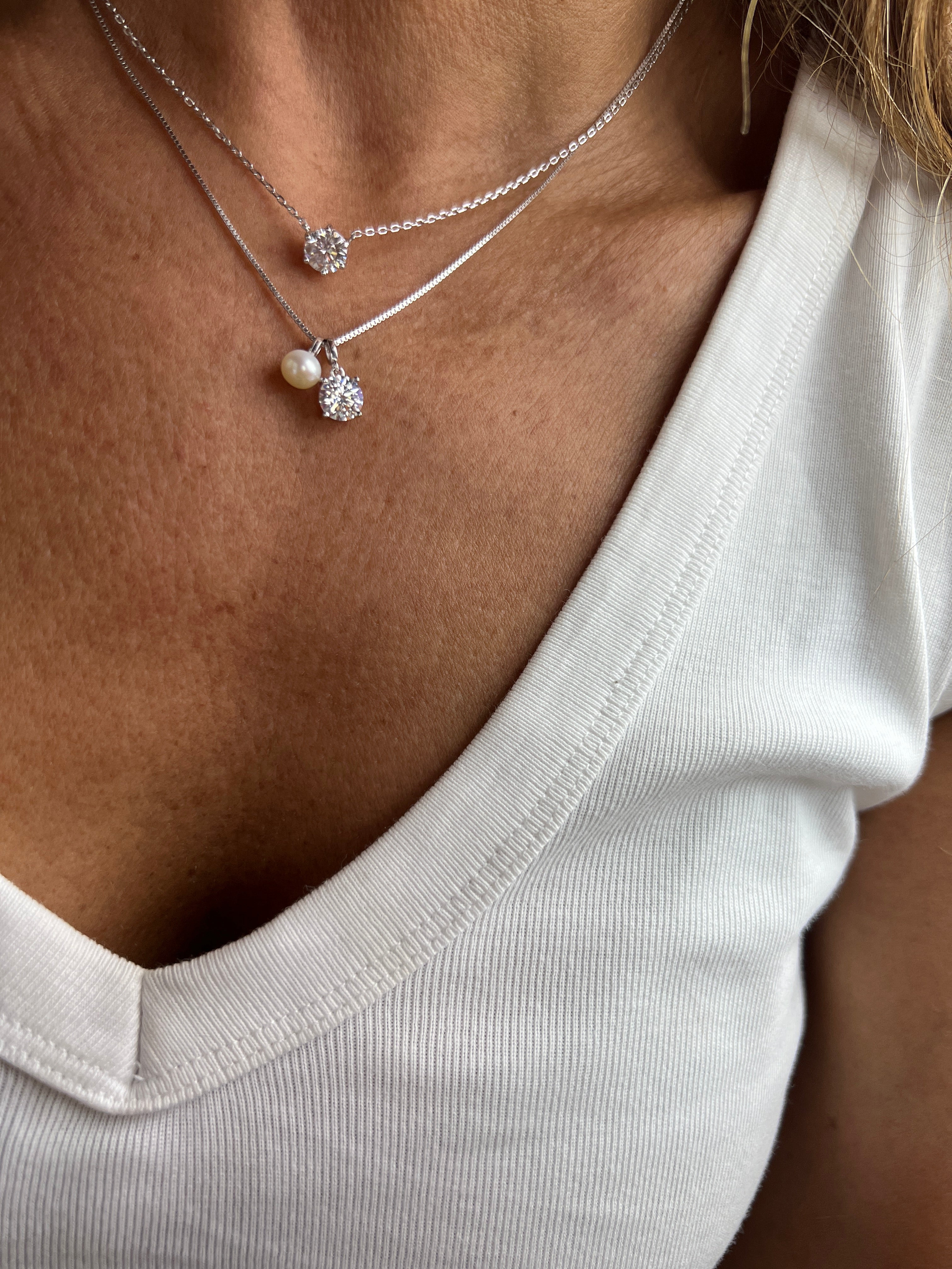 O colar Lumi combina um design refinado com materiais de alta qualidade. Fabricado em prata 925 com banho de ródio, apresenta uma pérola barroca que oferece uma estética única, além de um ponto de luz de moissanite de 5mm e 1.0 ct, garantindo durabilidade e brilho excepcionais.